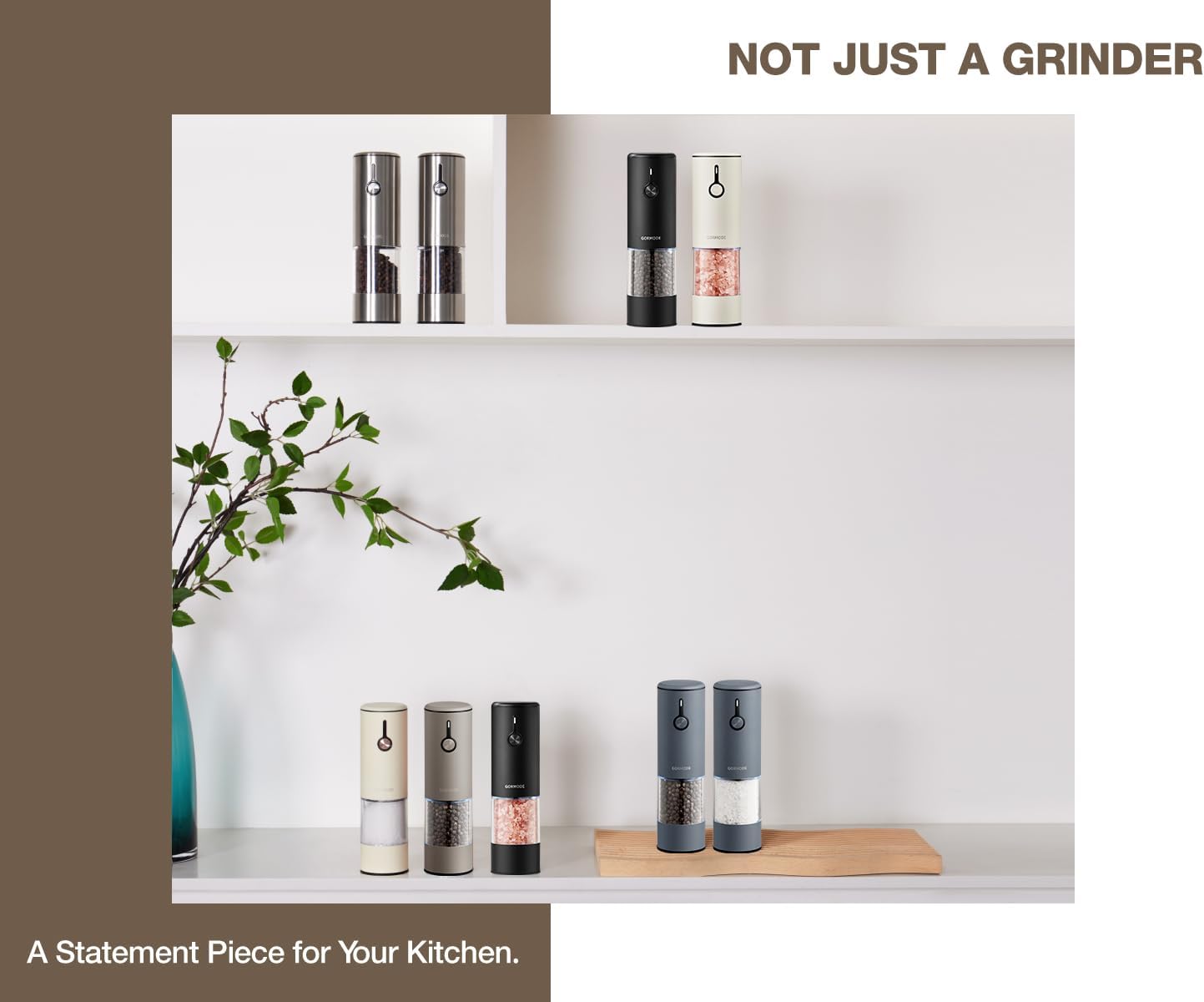 - USB Rechargeable & Long-Lasting Battery – Say goodbye to frequent battery replacements! Our salt and pepper grinder set features a USB charging port, ensuring a longer lifespan and hassle-free use. A single charge powers up your grind sessions for weeks.