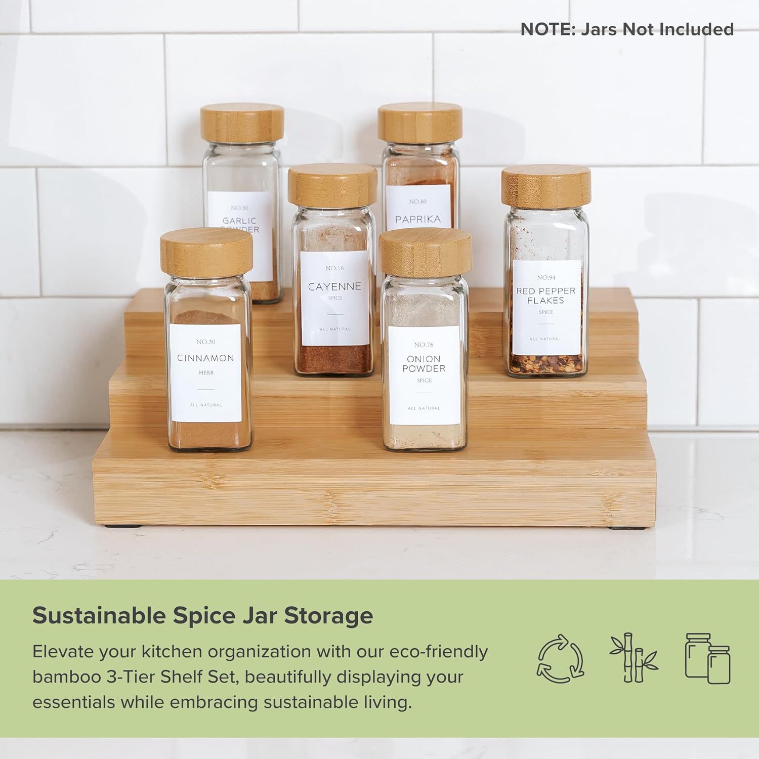 - Tiered Perfection: Three spacious tiers provide ample room to display your favorite spices, jars, or pantry essentials, making it the ultimate spice rack organizer for cabinet or countertop use