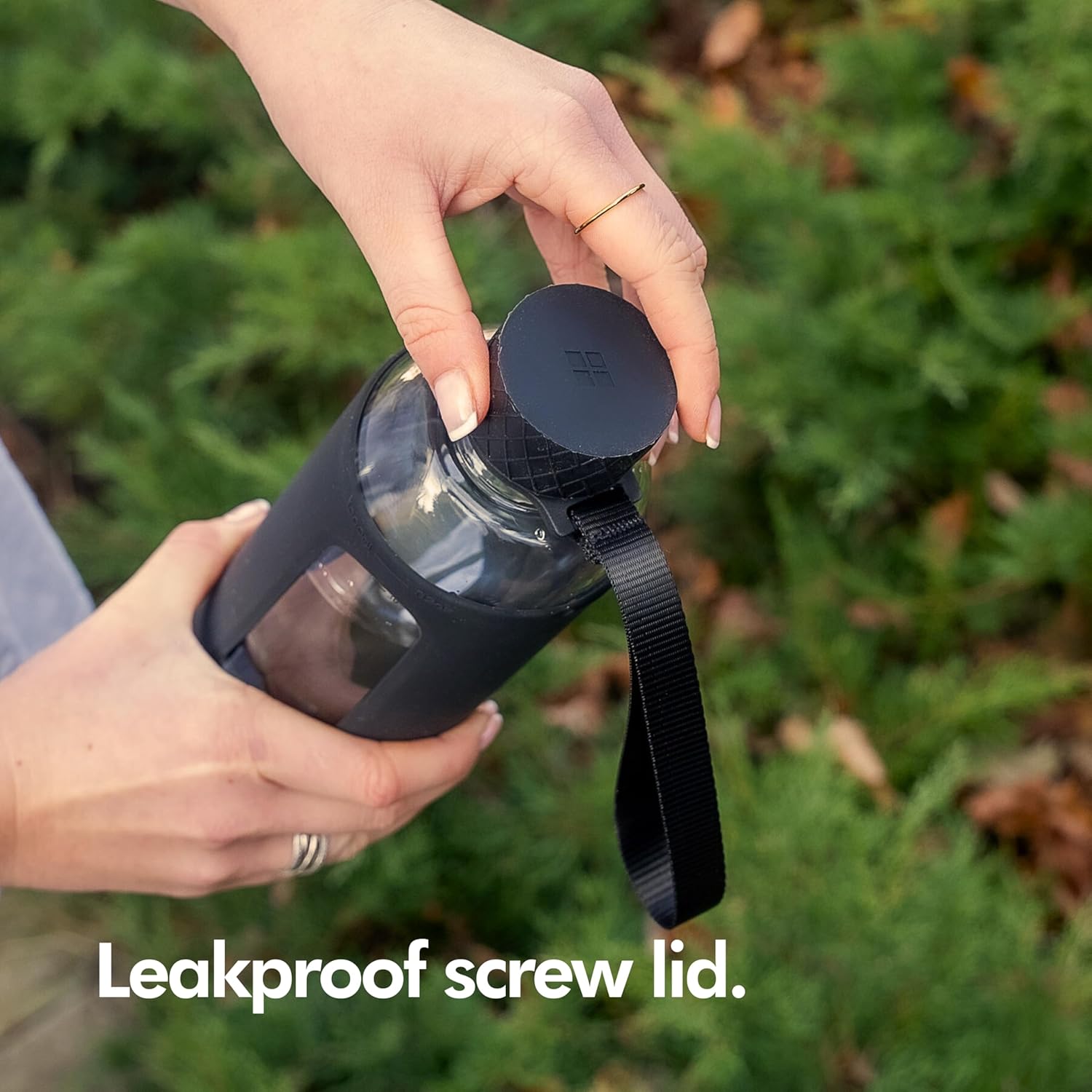 - LEAK-PROOF DESIGN FOR WORRY-FREE USE β The secure lid keeps this glass water bottle completely leak-proof, preventing spills in your bag.
