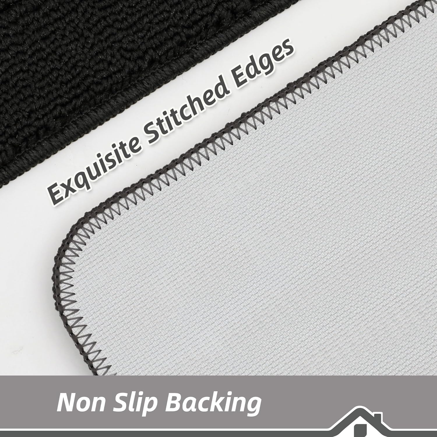 BEQHAUSE 30x18 Inch Kitchen Rug Mat Durable Kitchen Rugs Non-Slip Washable Absorbent Kitchen Mats for Floor Dirt-Resistant Semicircular Kitchen Mat (Black, 2PCS)
