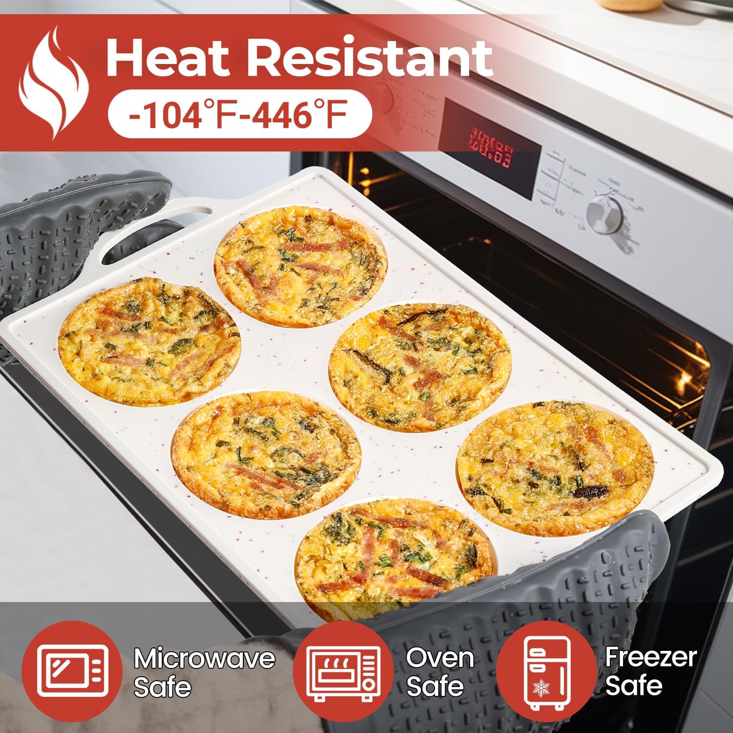- Safety & Healthy: Safe for oven, microwave, dishwasher, fridge, freezer. Wide heat range: -104 to 446 degrees Fahrenheit, these muffin top pans are impermeable, practicality and durability