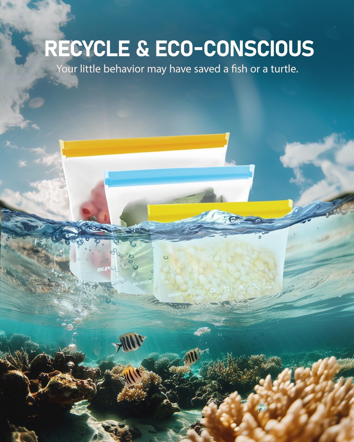 IDEATECH Gallon Freezer Food Containers, BPA Free PEVA Reusable Gallon Bags, Sandwich Bags, Lunch Baggies, Travel Healthy Food (Grey, 8Pack-8Gallon)
