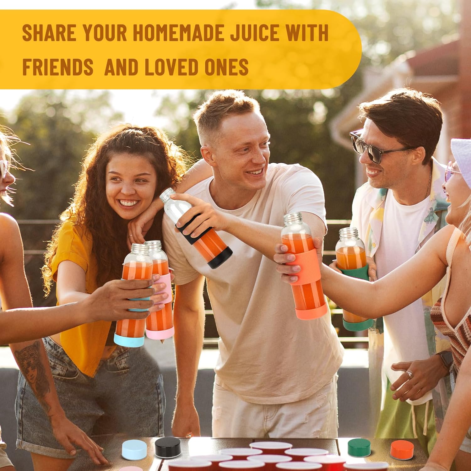 - AIRTIGHT,LEAK PROOF AND SILICONE SLEEVE: Each juice bottle comes with a stainless steel cap which is lined with a rubber O-ring, 100% leakproof. Their glass water bottle with silicone sleeve offers added protection and a comfortable grip