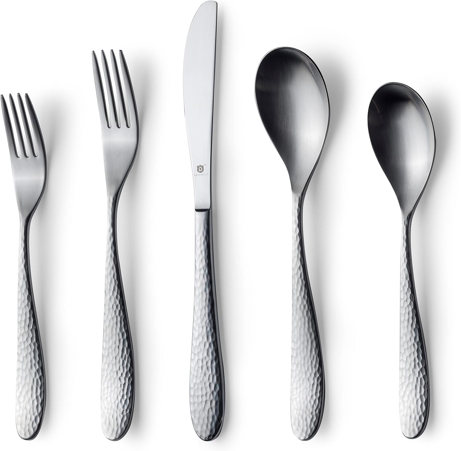 Matte Silverware Set, 18/10 Stainless Steel Satin Flatware, Modern Brushed Finish Cutlery, Dishwasher Safe & Durable, Built to Last (40-Piece, Marettimo Hammered)