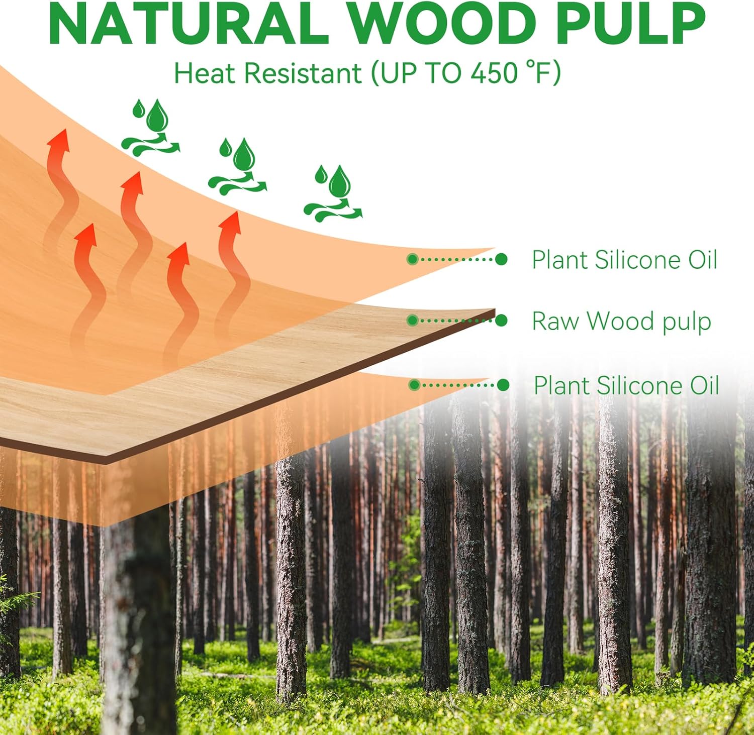 - NATURAL & SAFE MATERIAL: OAMCEG Air Fryer Paper is made of unbleached natural wood pulp, free from harmful chemicals like BPA and PFA.Our 1.5 times thicker parchment paper ensures safer cooking for your family.