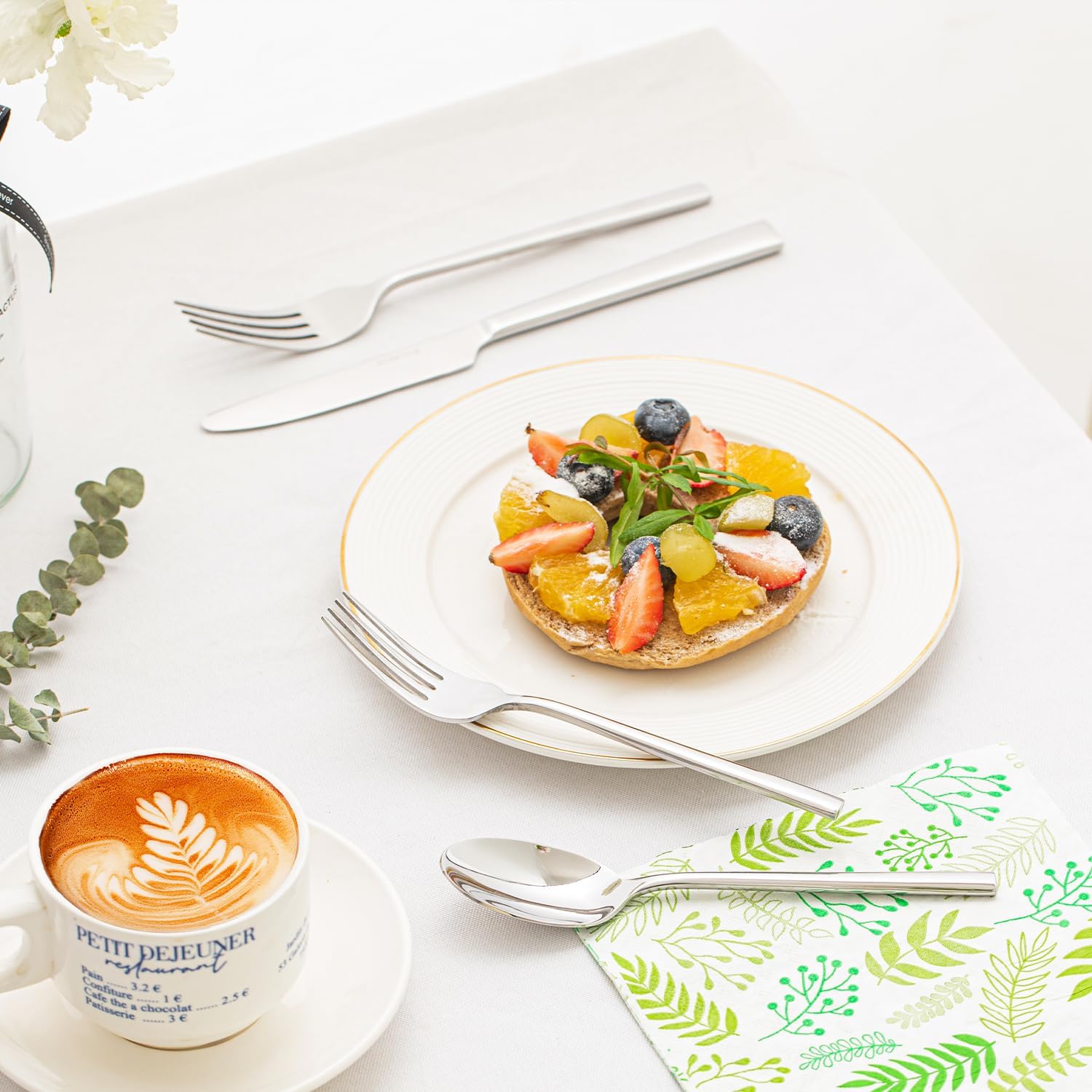 - DESIGN AND APPEARANCE: Mirror finish, natural and elegant design.Smooth and silk surface without grain, easy to clean and care in daily use. Crafted forged process,strong and durable,so that the flatware set has a thicker texture.