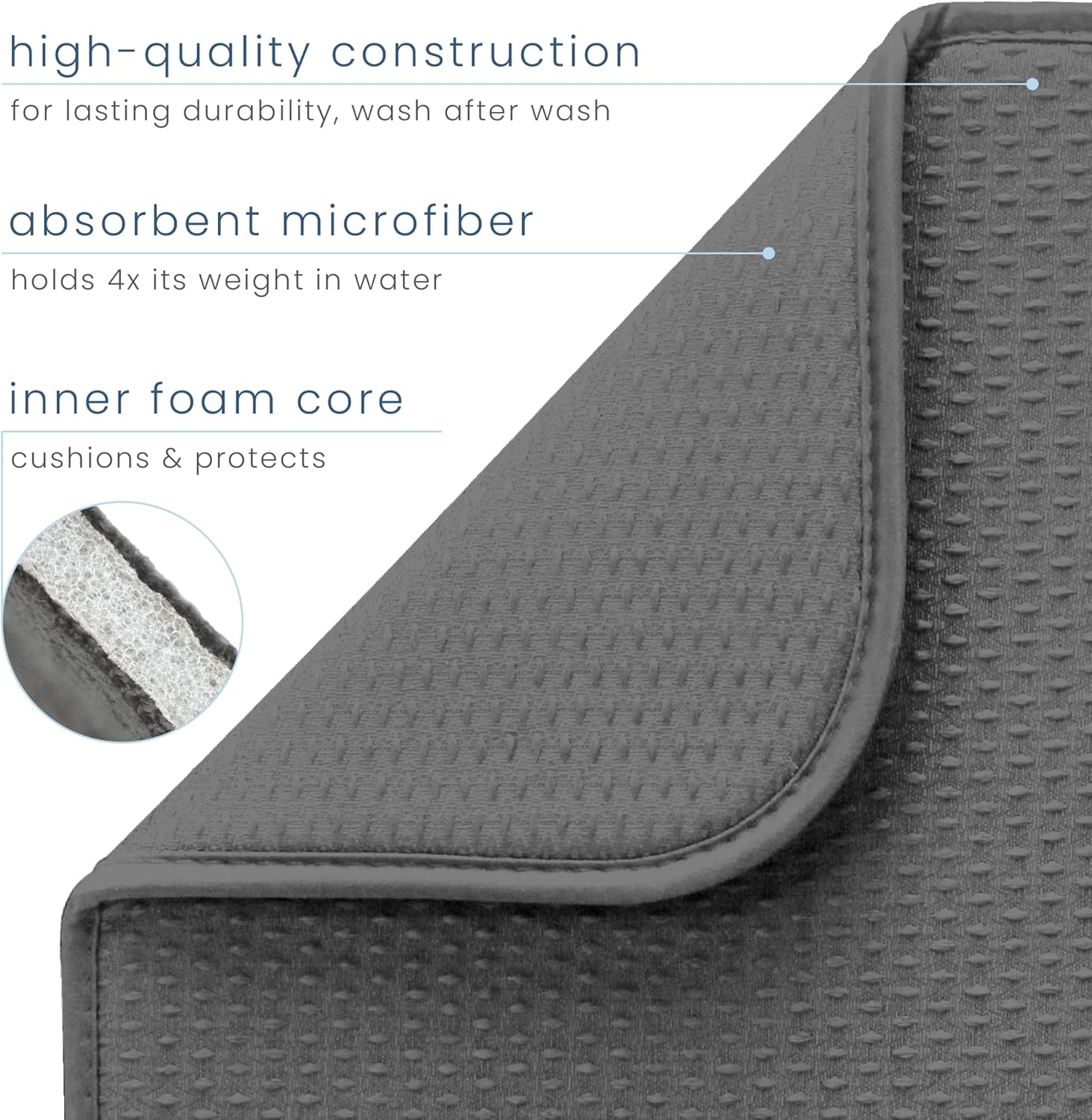 S&T INC. Dish Drying Mat, 16” x 18”, Absorbent Microfiber Kitchen Counter Mat, Drying Pad for Dishes, Utensils, Pots and Pans, Large, Diamond Texture, Grey