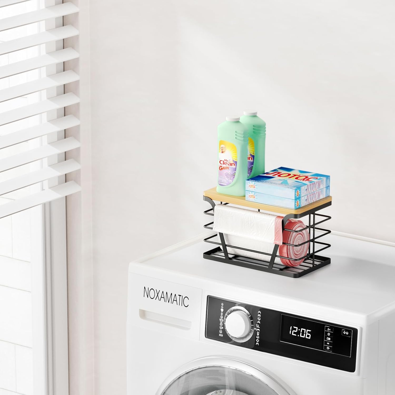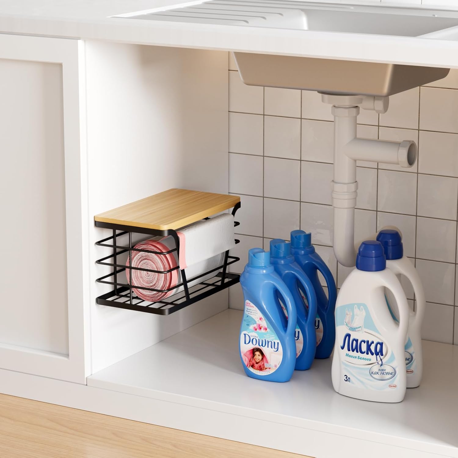 - TRASH BAG ORGANIZER: Includes a grocery bag holder with removable bamboo top and adhesive for easy installation; wall-mounted design maximizes space in laundry room and kitchen; perfect for storing small garbage bags, or using the lid as an extra shelf for groceries and other small items
