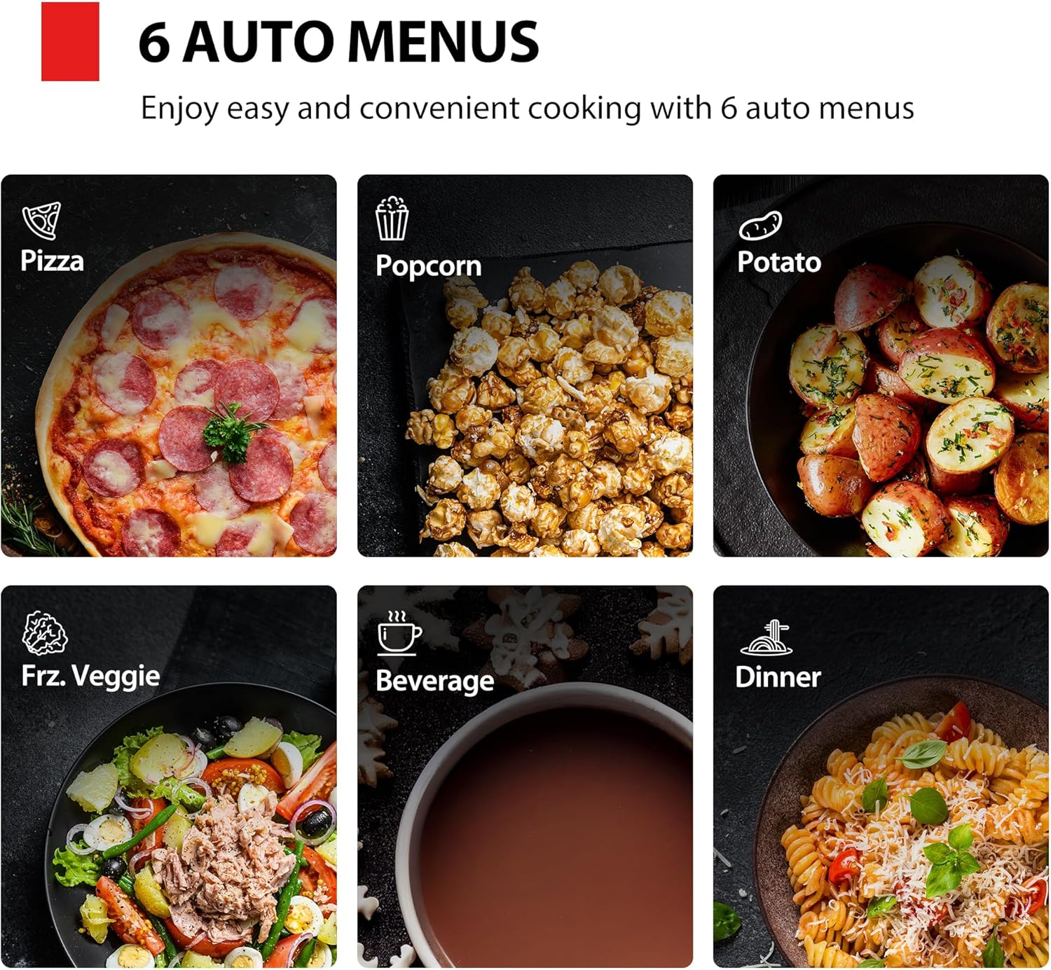 - 6 Preset Menus: Compact microwave oven features 6 preset menu options for effortless cooking of dinner, snacks, beverages, and much more.
