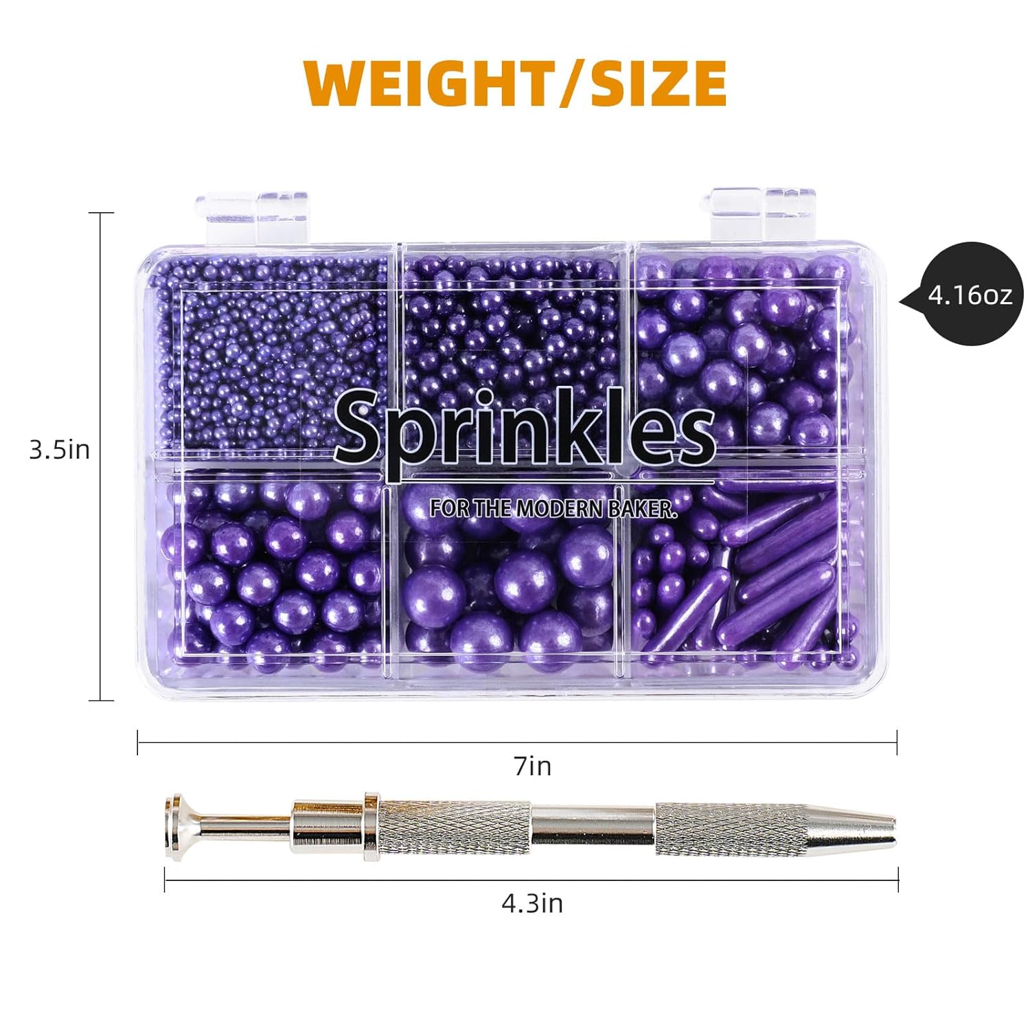 - 【Product List】: You will receive: 1 box of Purple cake sprinkles, 118g/4.16oz. 1 piece of pearl grabber. Sufficient quantity, convenient and practical, it can meet your daily needs well.