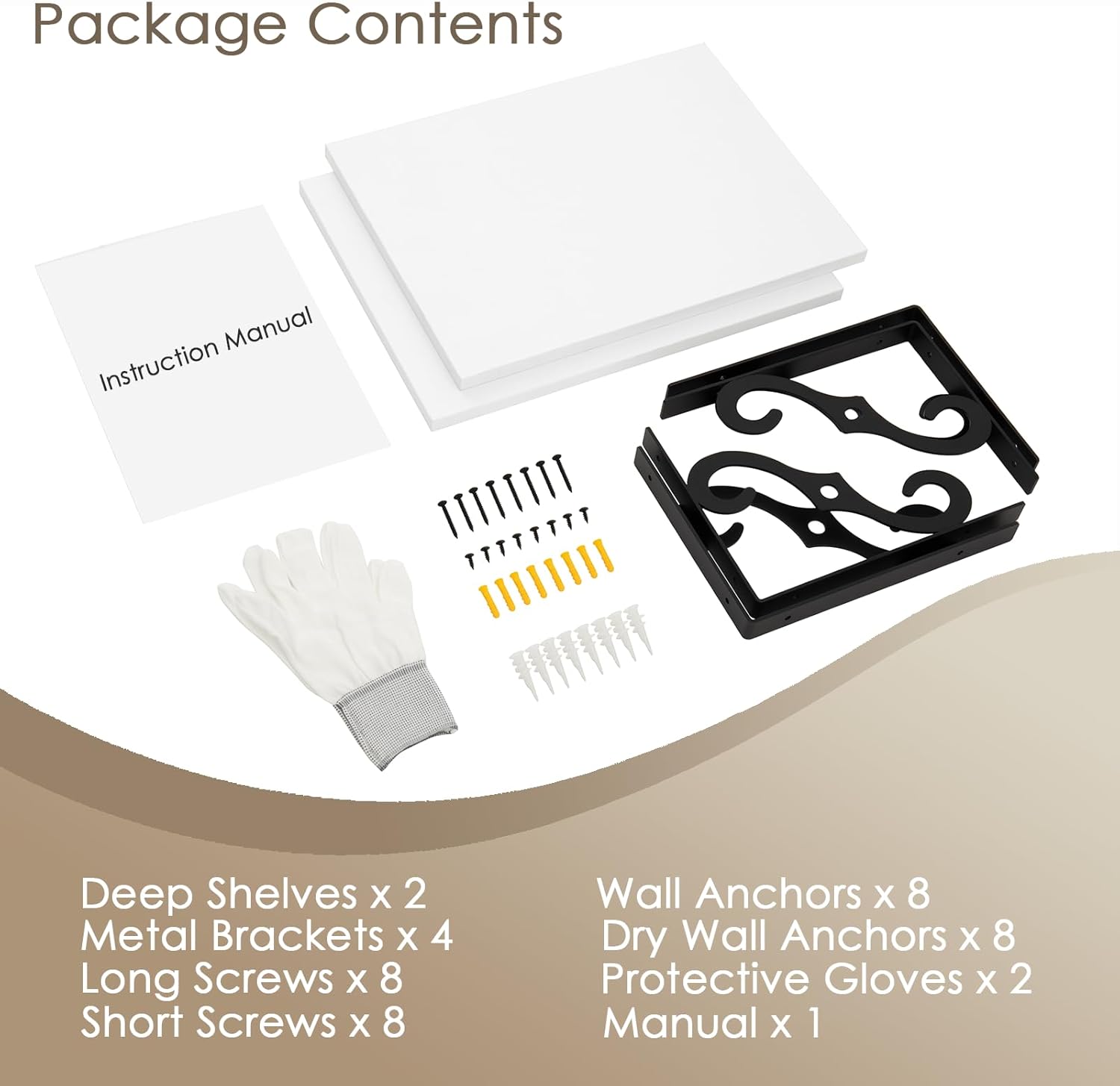DINZI LVJ Deep Floating Shelves, 16" W x 12" D Wall Shelves Set of 2, Wide Display Shelf Wall Mounted with Brackets, Easy-to-Install Wall Bookshelf for Living Room, Bathroom, Bedroom, White