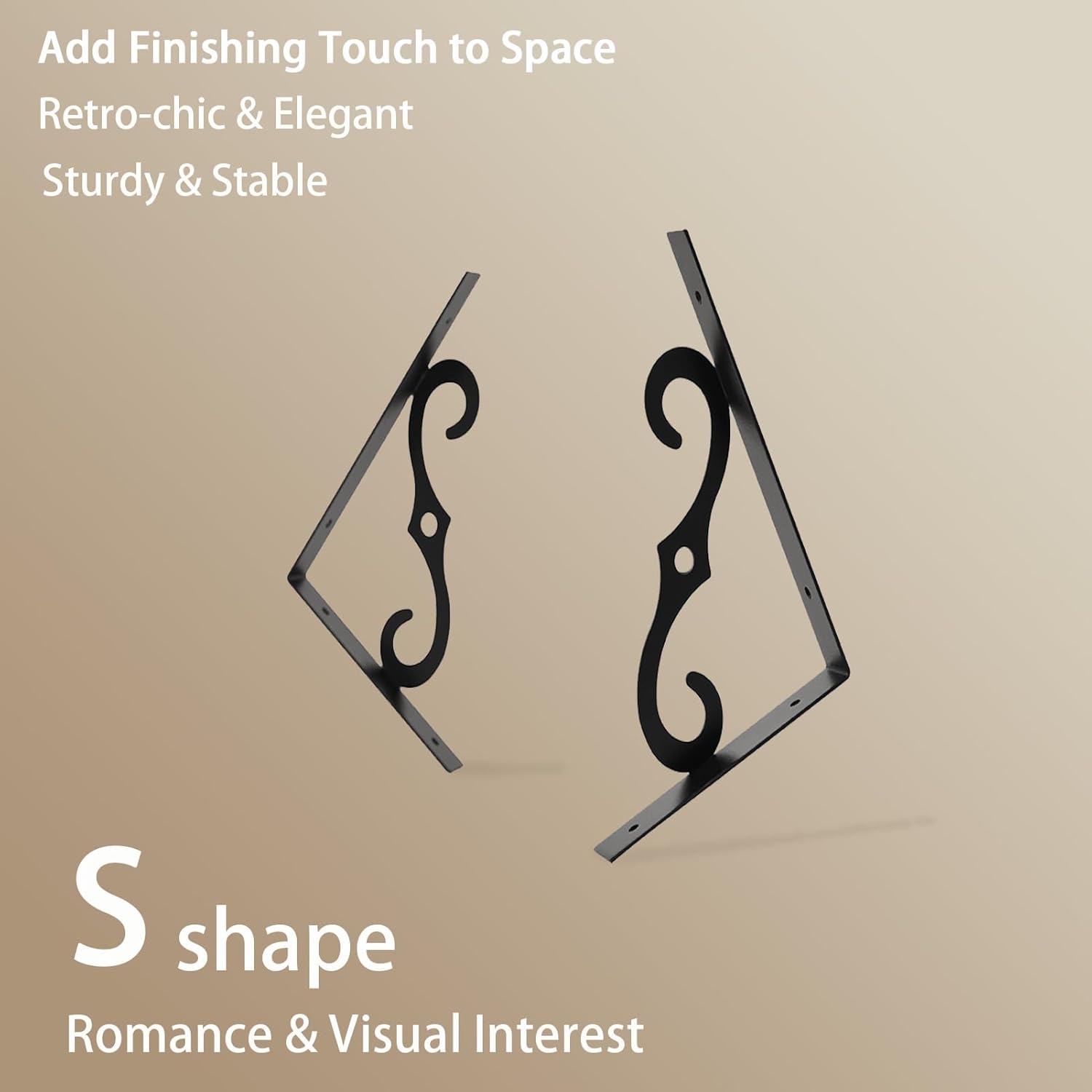 - ăAdd Finishing Touch to SpaceăBoasting a retro-chic design, this wall mounted shelf effortlessly integrates with any decor style. Rusticity wood grain and exquisite S-shaped iron brackets flaunt visual interest and romance. It serves as both a practical storage solution and a stylish focal point