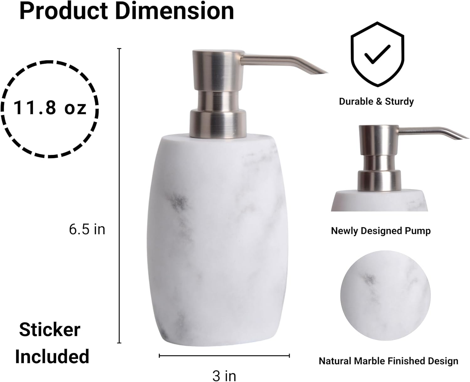 - 【CARE INSTRUCTIONS】To maintain your soap pump dispenser's longevity, gently clean with a damp cloth or rinse with water. Avoid rough cleaning products that could damage the surface and protect it from direct sunlight to preserve its aesthetic appeal and functionality.