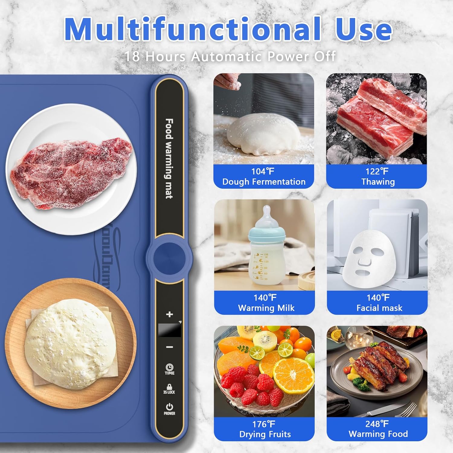 - 【Multi-Functional Kitchen Helper】The heating mat for food is a multi-functional home helper for all kinds of heat-resistant materials, such as glass, stainless steel, ceramic, etc.; it not only keeps dishes warm during daily meals, but also helps to heat milk, thaw steak, ferment dough, etc., suitable for all seasons, can be used anytime, anywhere, keep dishes warm for family gatherings, parties, buffets, festivals, and other celebrations, always maintain the best taste