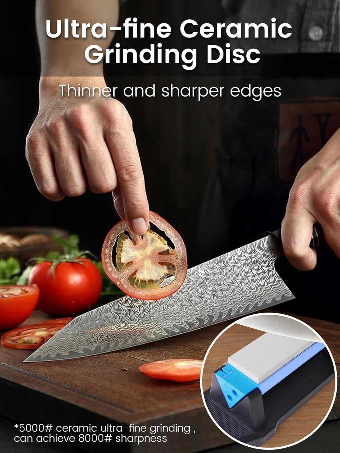 - 【3-Sided Sharpening Stones】Material Originated from Japan, #400 whetstone coarse grit is suitable for rough grinding, repairing large gaps and restoring sharpness; #1000 whetstone medium grit is suitable for repairing small gaps and maintaining the knife regularly; #5000 ceramic ultra-fine grit, can achieve #8000 sharpness, it is suitable for fine polishing the blade to make the edge close to perfection.
