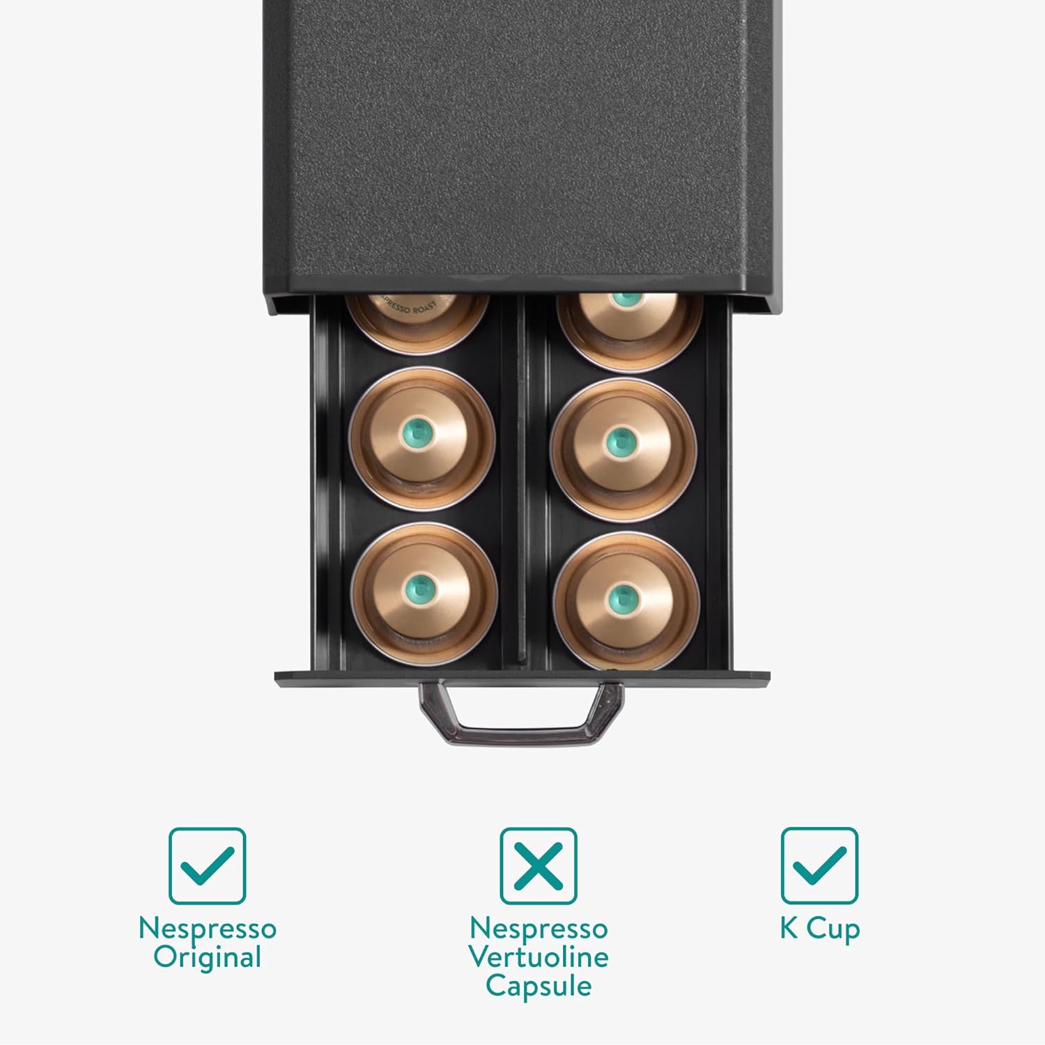 - EFFORTLESS MORNING ROUTINE: Speed up your morning coffee preparation with this coffee pod drawer. The coffee organiser station is designed to ensure your favourite coffee pods are always within reach.