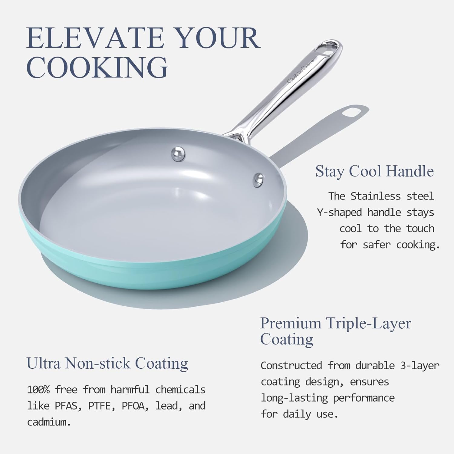 - ๐ญ๐ฌ๐ฌ% ๐๐จ ๐๐๐ซ๐ฆ๐๐ฎ๐ฅ ๐๐ก๐๐ฆ๐ข๐๐๐ฅ๐ฌ & ๐ก๐ผ ๐ฃ๐๐๐ฆ/๐ฃ๐ง๐๐/๐ฃ๐๐ข๐ - Superior to Teflon Pans: Crafted with 3X Durable Ceramic Coating, our 8-inch nonstick frying pan is 100% free from PFAS, PTFE, PFOA, lead, and cadmium. Healthier cooking with 50% less oil โ perfect for eggs, pancakes, or grilled cheese. Proven Safety: 800+ lab tests ensure zero chemical release even at 500ยฐF.