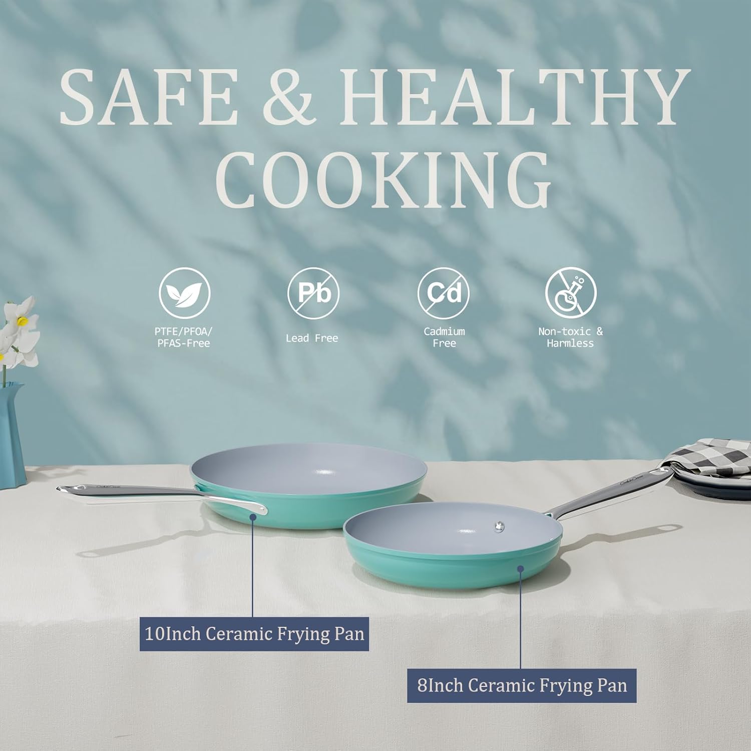 - ๐ญ๐ฌ๐ฌ% ๐๐จ ๐๐๐ซ๐ฆ๐๐ฎ๐ฅ ๐๐ก๐๐ฆ๐ข๐๐๐ฅ๐ฌ & ๐ก๐ผ ๐ฃ๐๐๐ฆ/๐ฃ๐ง๐๐/๐ฃ๐๐ข๐ - Superior to Teflon Pans: Crafted with 3X Durable Ceramic Coating, our 10-inch nonstick frying pan is 100% free from PFAS, PTFE, PFOA, lead, and cadmium. Healthier cooking with 50% less oil โ perfect for eggs, pancakes, or grilled cheese. Proven Safety: 800+ lab tests ensure zero chemical release even at 500ยฐF.