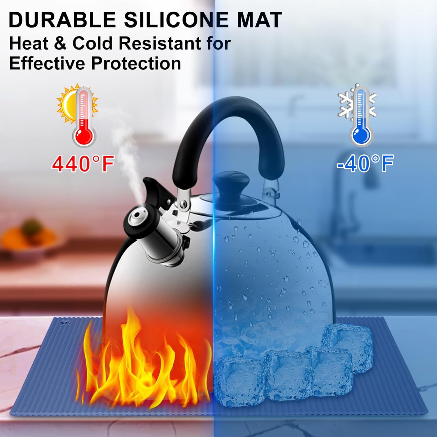 - MAXIMUM HEAT PROTECTION – Our premium silicone trivets for quartz countertops can withstand extreme temperatures from -40°F to 480°F, protecting your kitchen surfaces from heat damage. The raised, wide ridges create a gap between hot pots and your table, offering superior heat protection and preventing scalding.