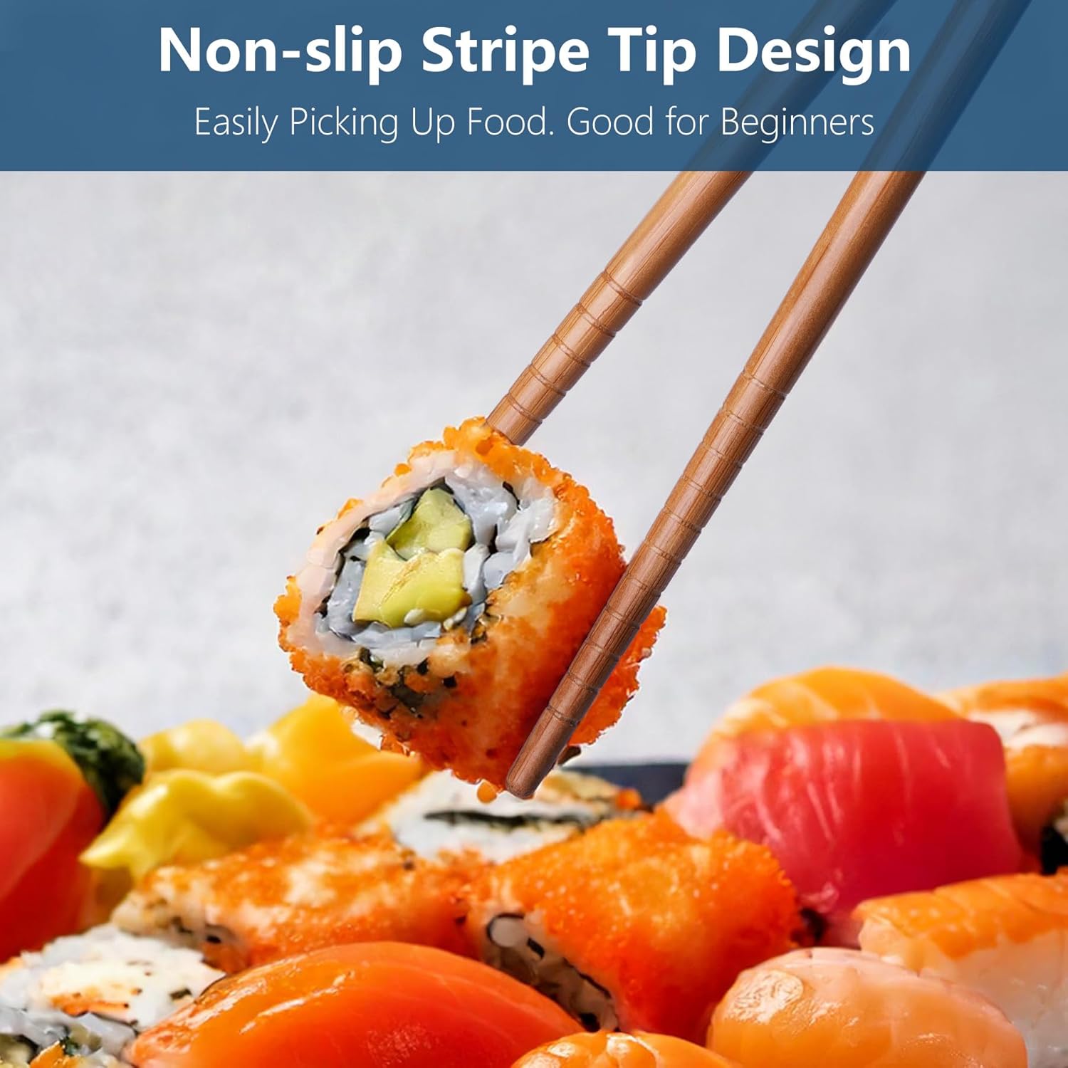 - Suitable Size & Lightweight: Chopsticks are 8.8 inches/22.5cm long, lightweight. Non-slip tip design, easy to picking up food, beginners can also use them well. Great for Asian street foods or home - cooked ramen noodles