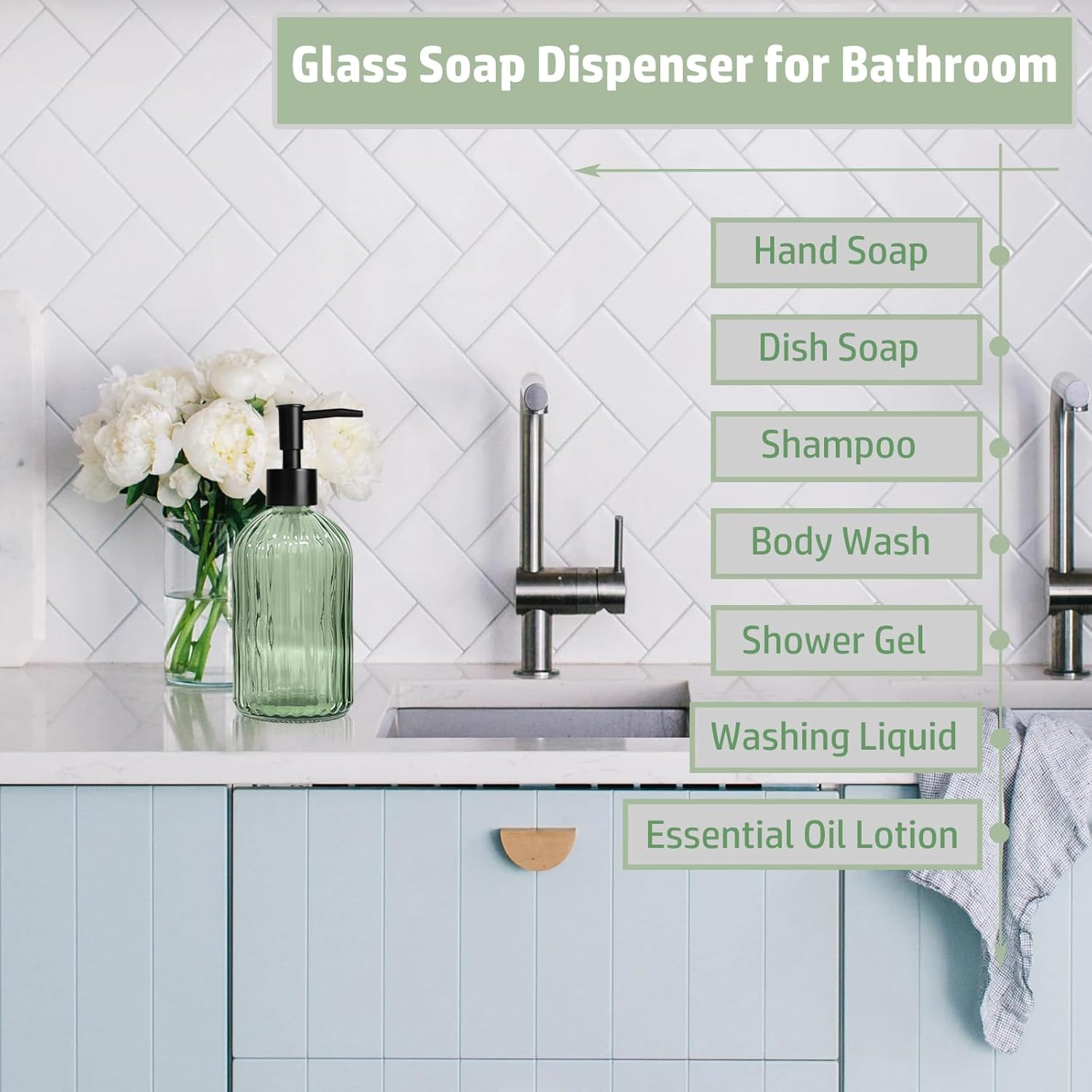 - Unique Design: Equally elegant and functional, army green glass soap dispenser featuring vertical stripe pattern, lovely way to adds a unique style, which make it look beautiful and stylish.