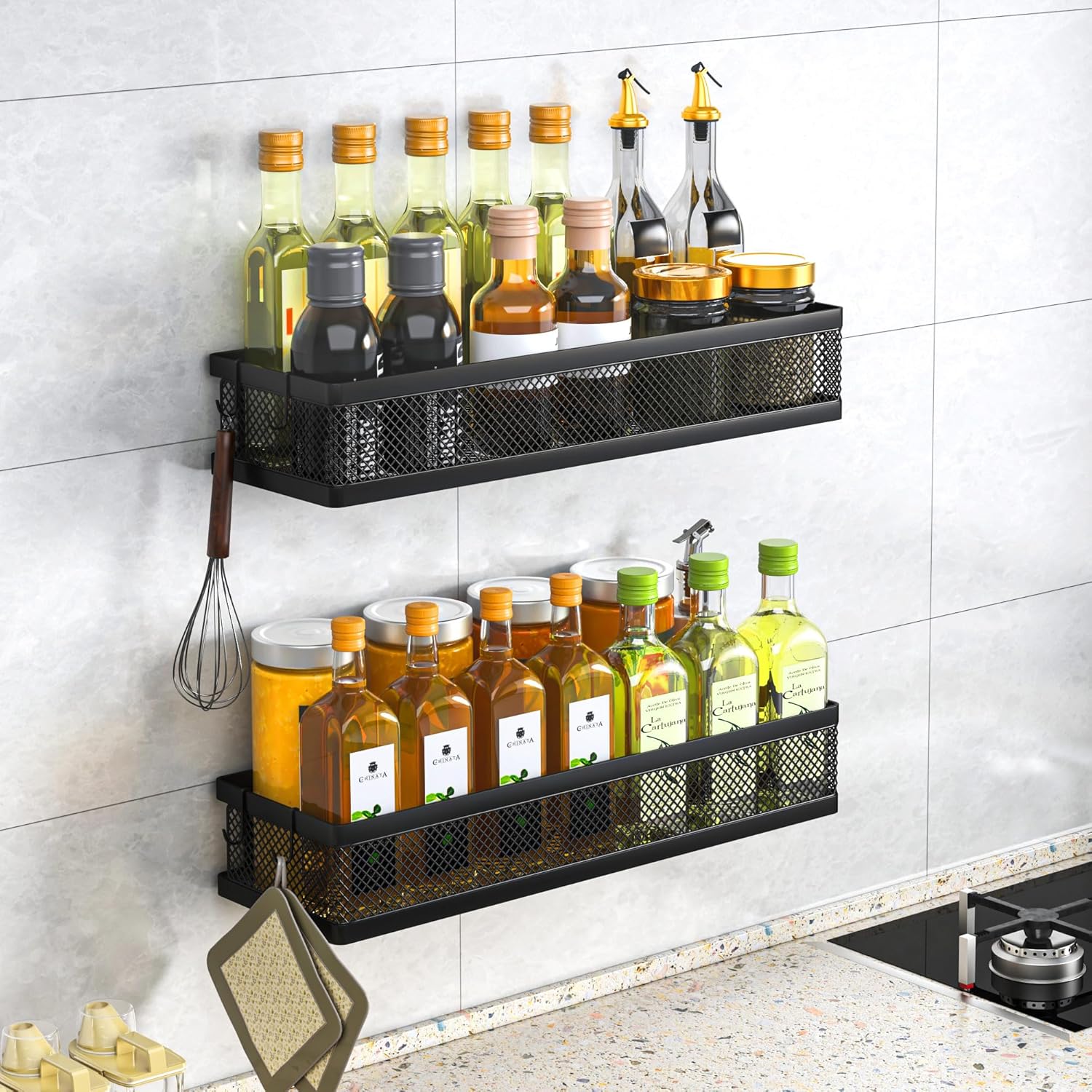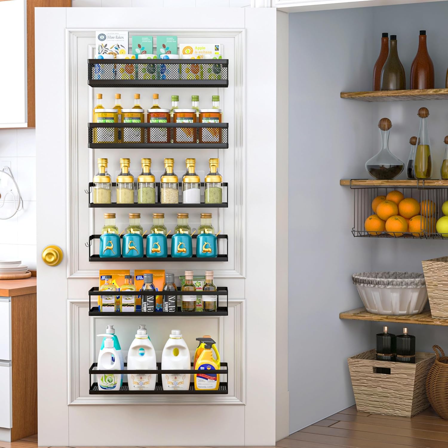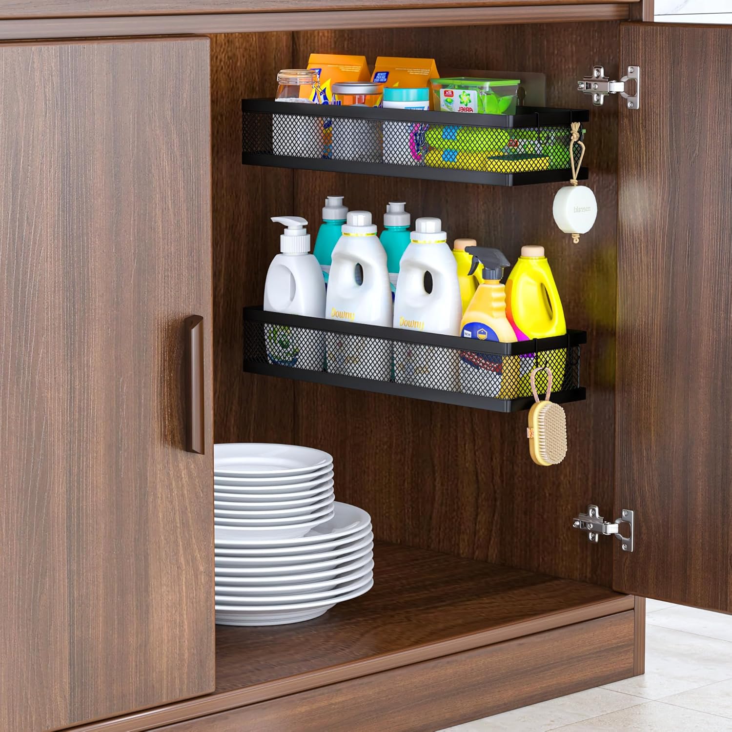 - ăMULTI-PURPOSE&MULTIFUNCTIONALăThe perfect solution for organizing a multitude of every items indoor or outdoor. The cabinet organizer hanging baskets wall mount is Ideal for organizing and storing spice bottles, pantry items, snacks, toiletries, tools, craft supplies,etc. And this metal bin basket free up enough space for your homes, kitchen, living room, bathroom, camper, farmhouse, apartments, college dorm rooms, etc.