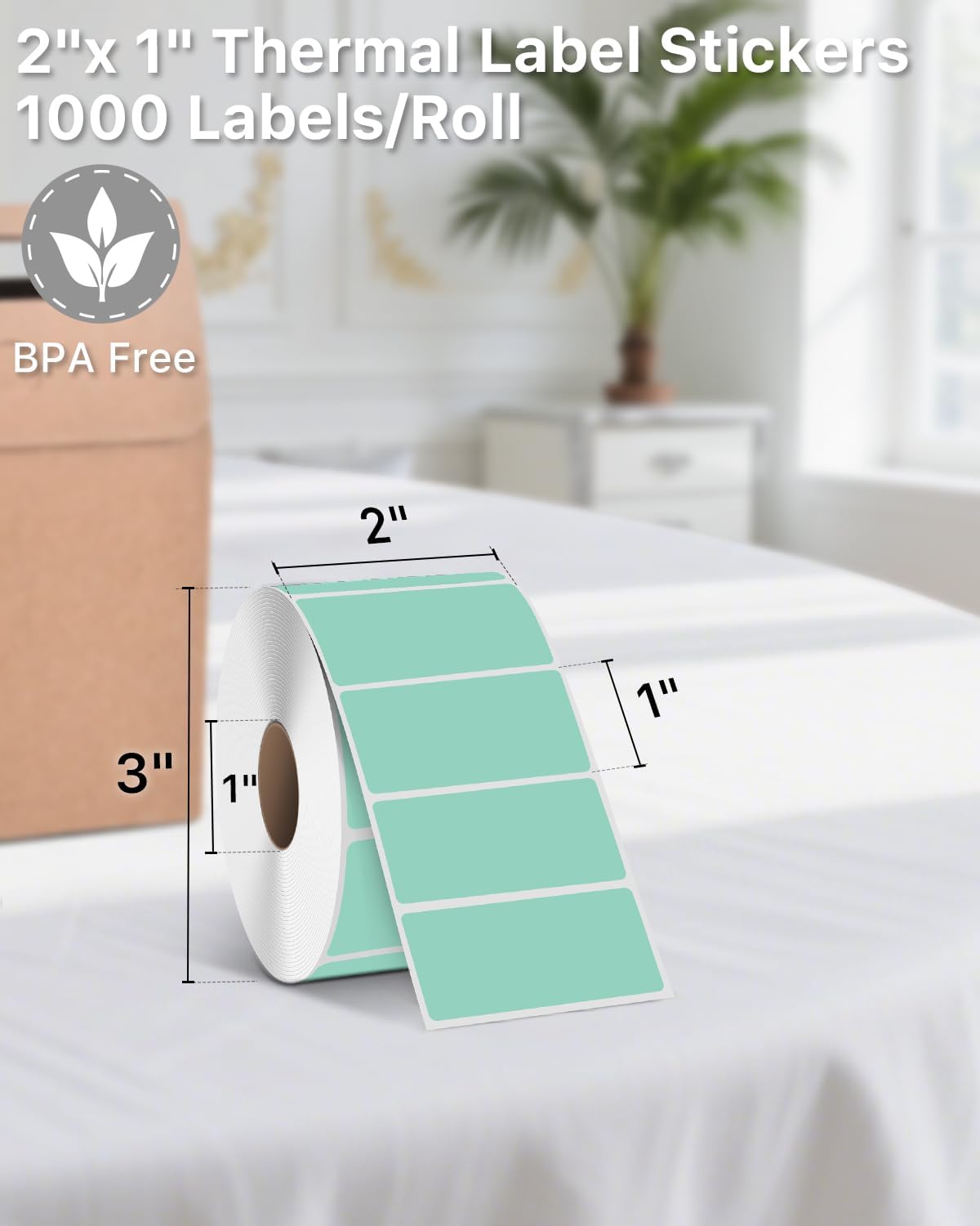 iEager 2x1 Inch Thermal Labels, Green Rectangle Thermal Printer Stickers, Durable Shipping Label Printer Sticker for Barcode, Name, Address, 1000 Labels/Roll