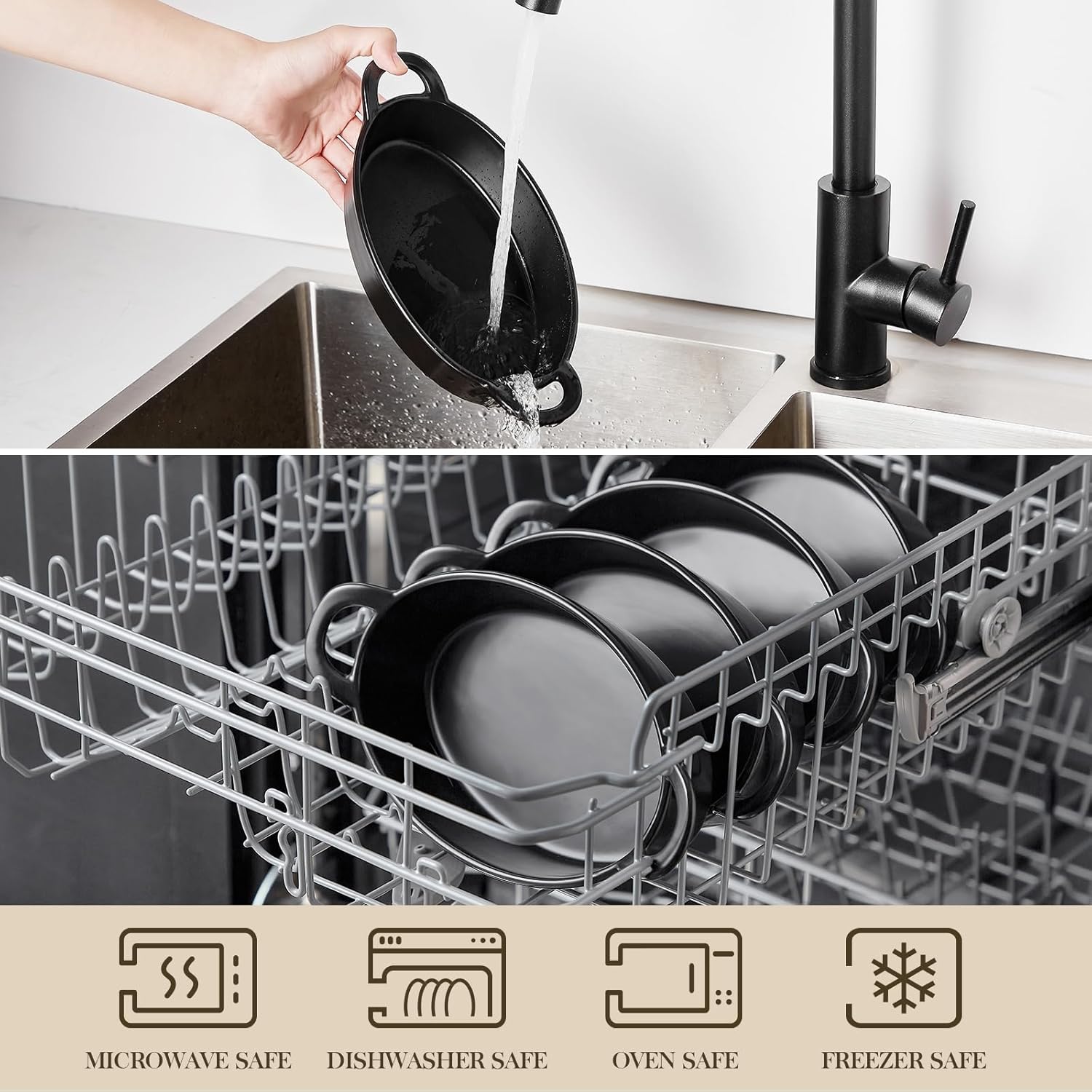 MALACASA Small Casserole Baking Dishes for Oven, Ceramic Oval Baking Dish Sets of 4, 8" x 5" Inch Au Gratin Baking Pans with Handles for Roasting, Lasagna, Pie, Baking Meat & Vegetables, Matte Black