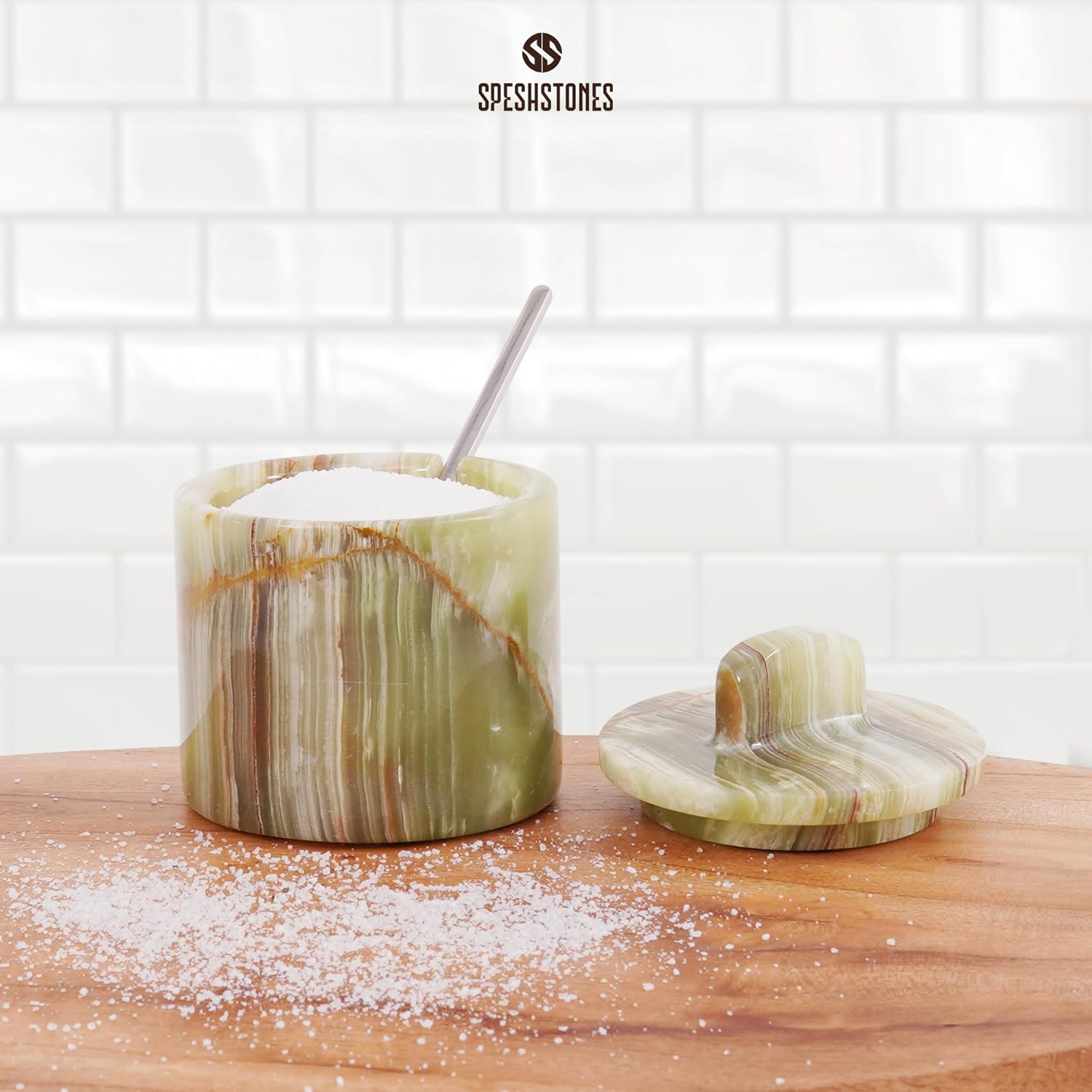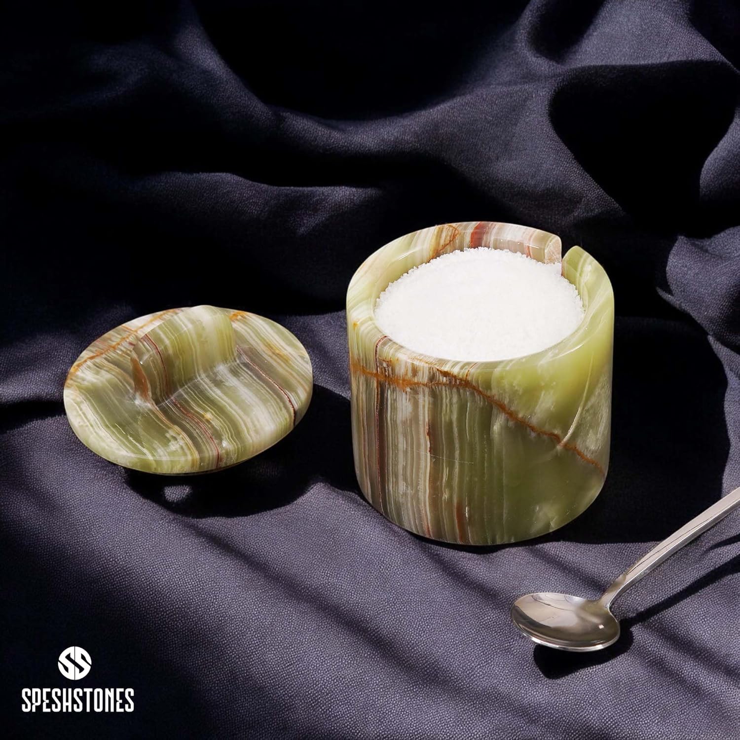 - WHAT IS INCLUDED - 1 x Marble Salt Cellar with Lid and Spoon. Comes along with SPESHSTONES Branded Secure and Fragile Packaging.