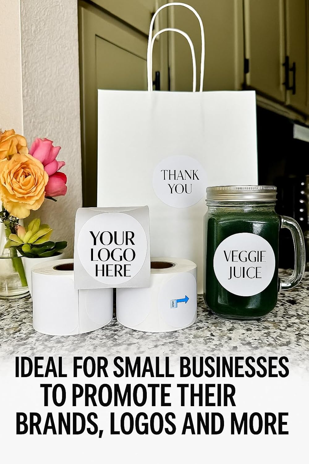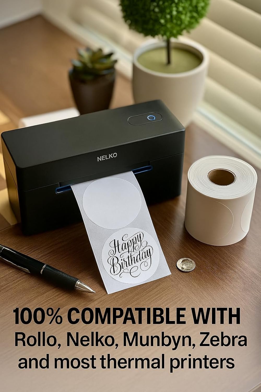 2.5 inch Round Thermal Labels – White-Direct Thermal Sticker Rolls for Small Business, Packaging, Compatible with Mumbyn, Nelko, Rollo, Zebra| 1" Core | Self-Adhesive | 1 Roll 500 Labels