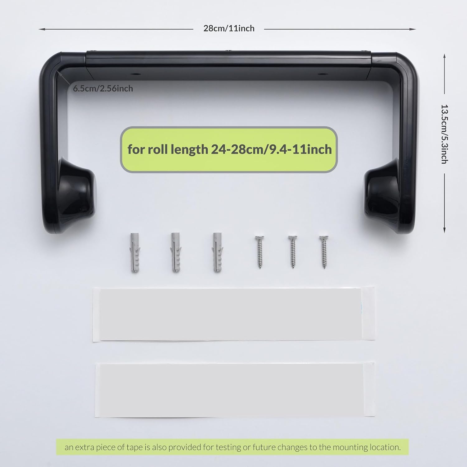 simpletome Paper Towel Holder Under Cabinet or Wall Mount ONE Hand Operation Tension Arm Kitchen Roll Holder (Black, for 24-28cm/9.4-11inches roll)