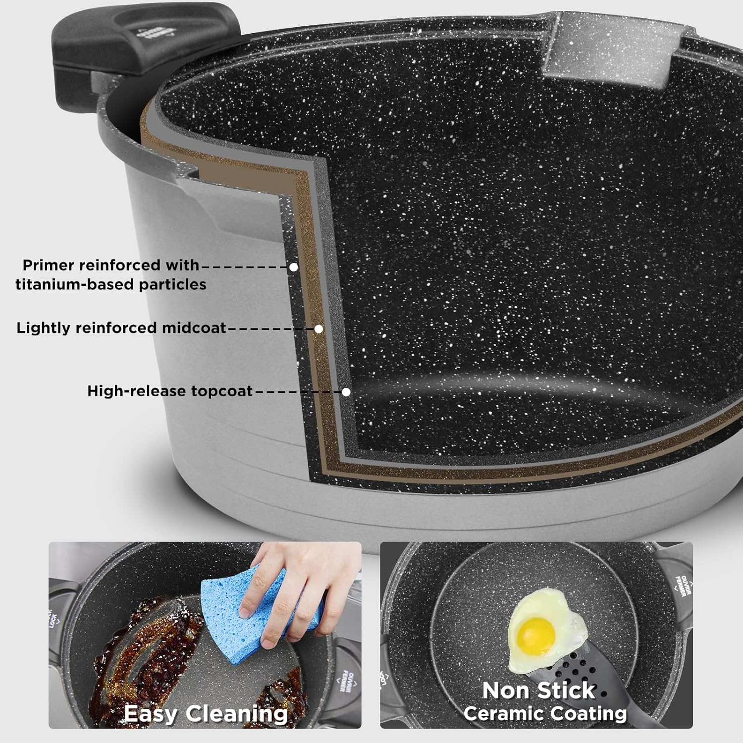 - Spacious 5QT Capacity โ Ideal for cooking large portions of pasta, soups, stews, and boiling vegetablesโperfect for family meals and gatherings.