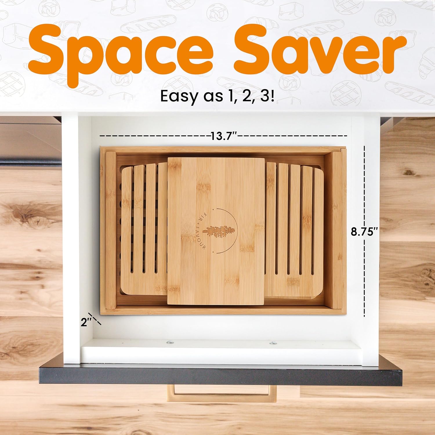 - COMPACT DESIGN AND EASY STORAGE: The bread slicing guide and all components fit nicely together inside the crumb tray. The bread loaf slicer can be stored discreetly on your counter or inside a kitchen drawer.