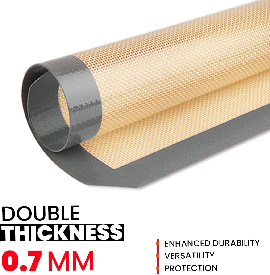 - The reinforced oven silicone mat 16.5 x 11.6 inch fiberglass layer spreads heat evenly, stopping hot spots that can spoil your baked treats. Crisp edges, and soft centers - everytime result for everything from delicate pastries to crunchy roasted vegetables that what Thread Nanny silicon baking sheets will deliver.