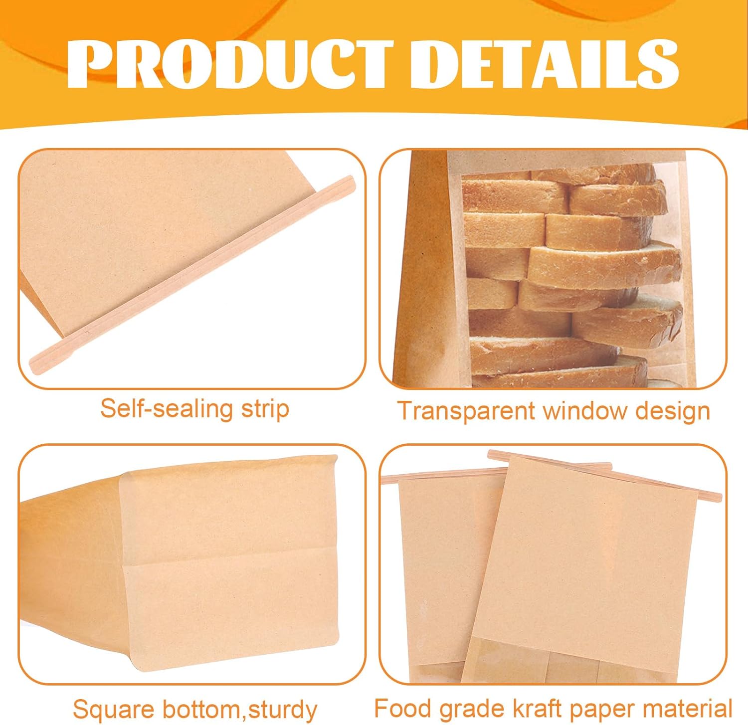 - 【Package Included】- You will get 100 pcs kraft paper bread bags with transparent windows. Our bread bags are made of thicker kraft paper, which is not easy to wrinkle after packaging bread, and can perfectly show the high quality of your bread whether it is for commercial use or packaging home bread to share with friends.