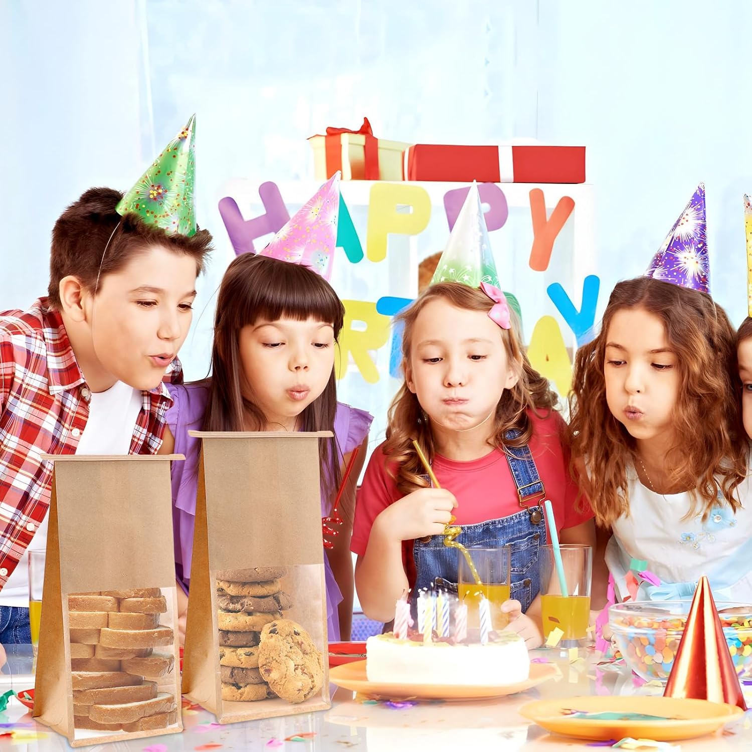 Tobeelec 100 Pcs Brown Kraft Paper Bread Bags with Window, Tin Tape Lock, Eco-Friendly, Disposable, 11 x 4 Inches