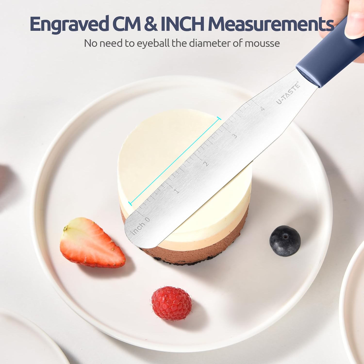 - Engraved CM & INCH Measurements: U-Taste cake frosting spatula features engraved CM & INCH measurements, ensuring you'll never have to eyeball the height and diameter of your cake. The engravings are deep and permanent, so they won't fade or wear off even after many uses and washes, providing accurate and consistent measurements every time you bake. Whether you're a seasoned professional or a novice baker, this feature enhances your confidence, enabling you to create beautifully cakes with ease.