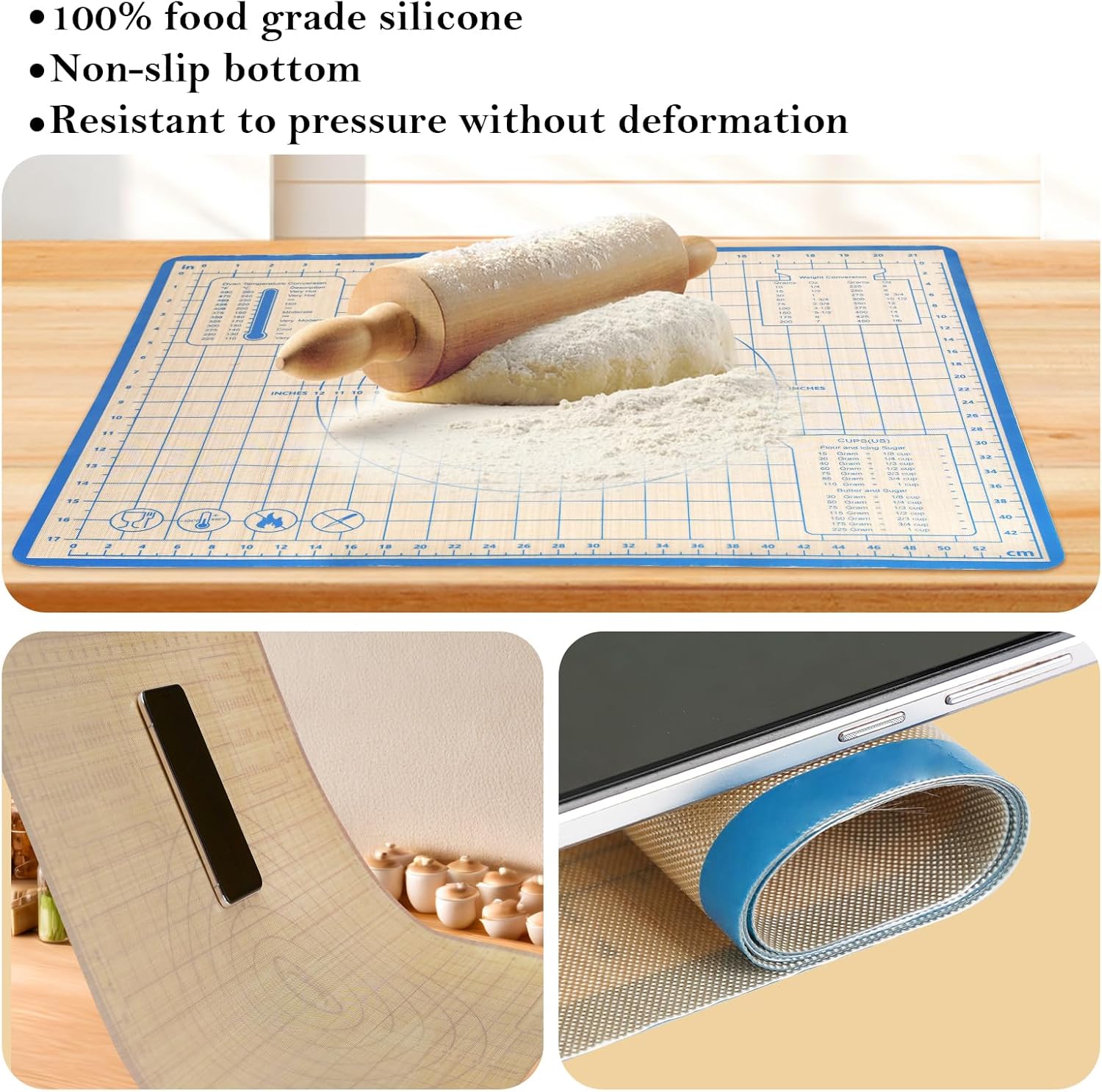 - 【Home Kitchen Essentials】 This baking mat is very thick, won't cause warping, and offers precise measuring instructions with a practical design.Silicone dough mat is good for pastry mat,countertop mat,table mat.You can also give it as a gift to your friends or cooking enthusiasts around you!