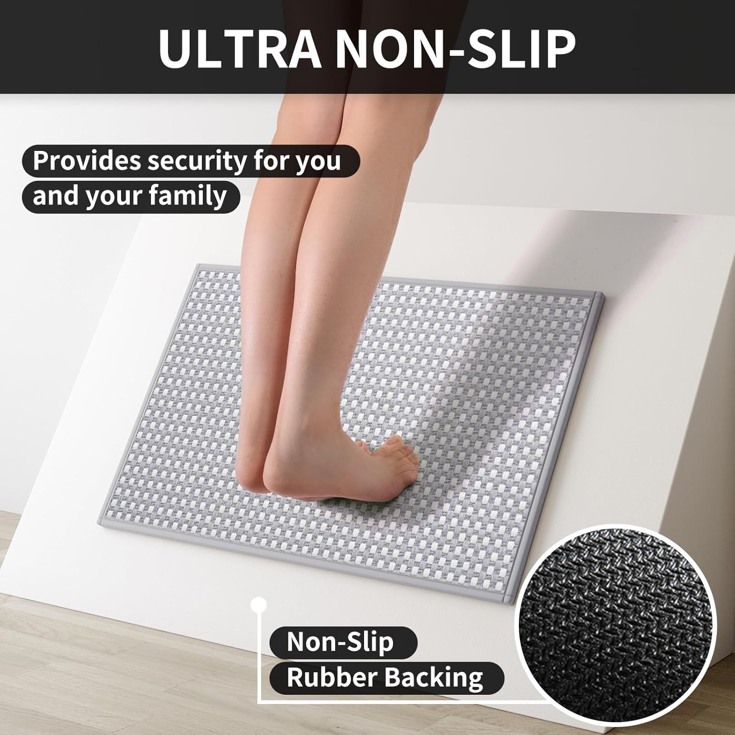 - Ultra Oil and Water Absorption: The woven surface of the kitchen sink mat quickly absorbs spilled oil and water, protecting the floor from grease, moisture, sauce or food crumbs. The kitchen rugs non slip washable keeps shoe soles and kitchen floors clean and dry, adding an extra layer of safety and security to your kitchen.