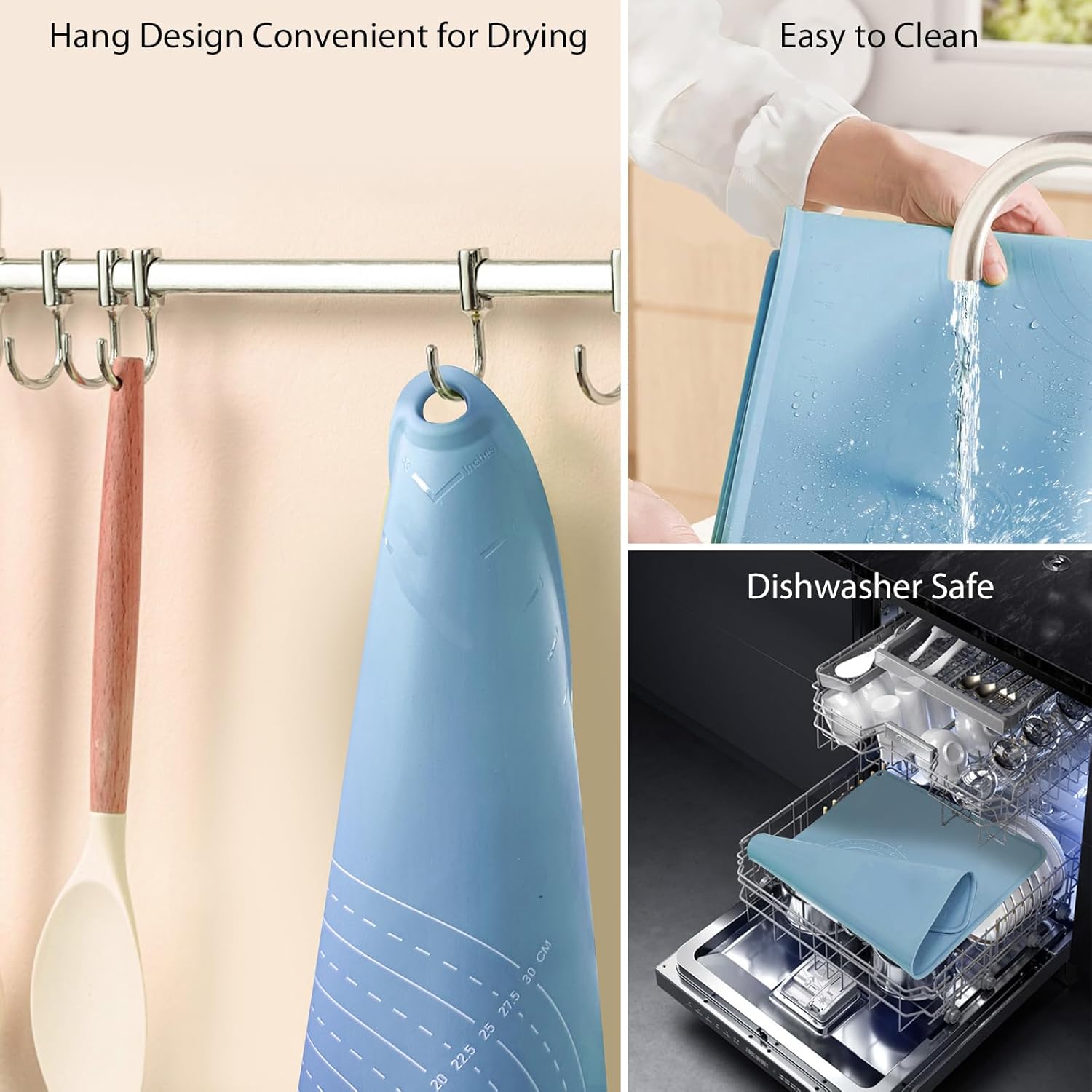 - Non Stick Surface And Non Slip Bottom: Our silicone baking mat features a non-stick design, you can easily knead the dough, and the dough and oil will not stick to the surface. Also the kitchen silicone pad has a strong adhesion and non-slip design, ensuring it stays firmly in place during vigorous kneading