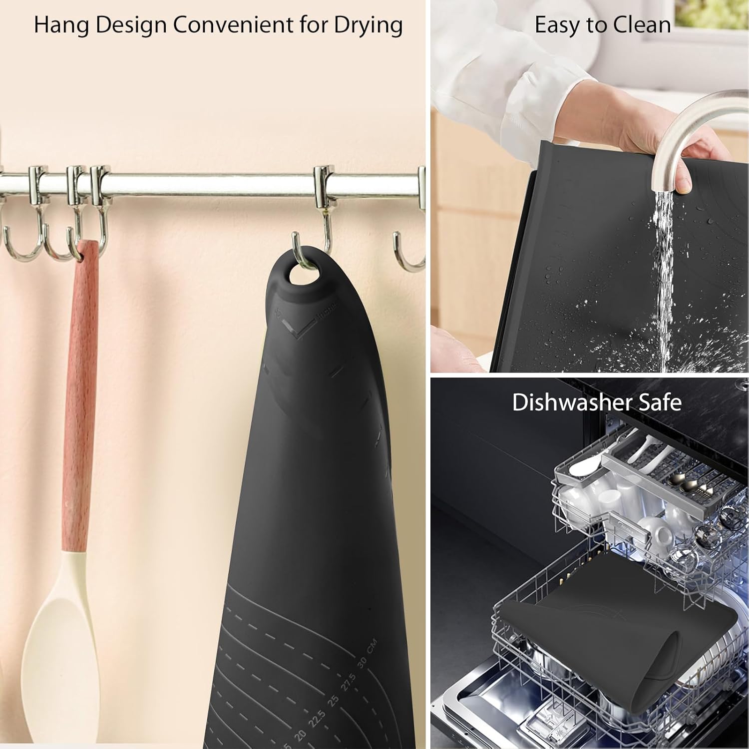 - Easy to Clean and Store: The smooth surface of the baking mat makes it easy to clean, just rinse the mat with warm soapy water or throw it into the dishwasher, there's no need to scrub again. Every package has a petal silicone tie wrap, it can be rolled up or folded for easy storage. In addition, the side holes can also be easily hung on the kitchen wall and then dry themselves