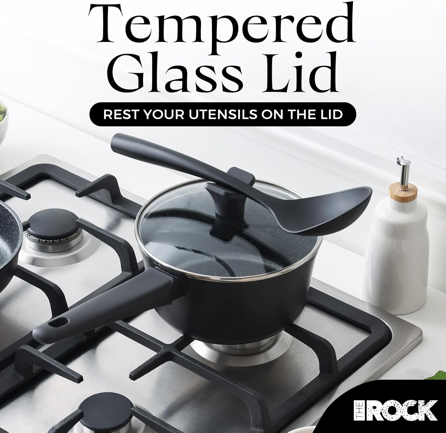 THE ROCK SOHO 2 Quart Nonstick Sauce pan with Lid – Compact & Durable Pot for Urban Kitchens, Nothing Sticks, Never Warps, Lasts Longer, Induction & Dishwasher Safe, PFOA/PFOS Free, Black