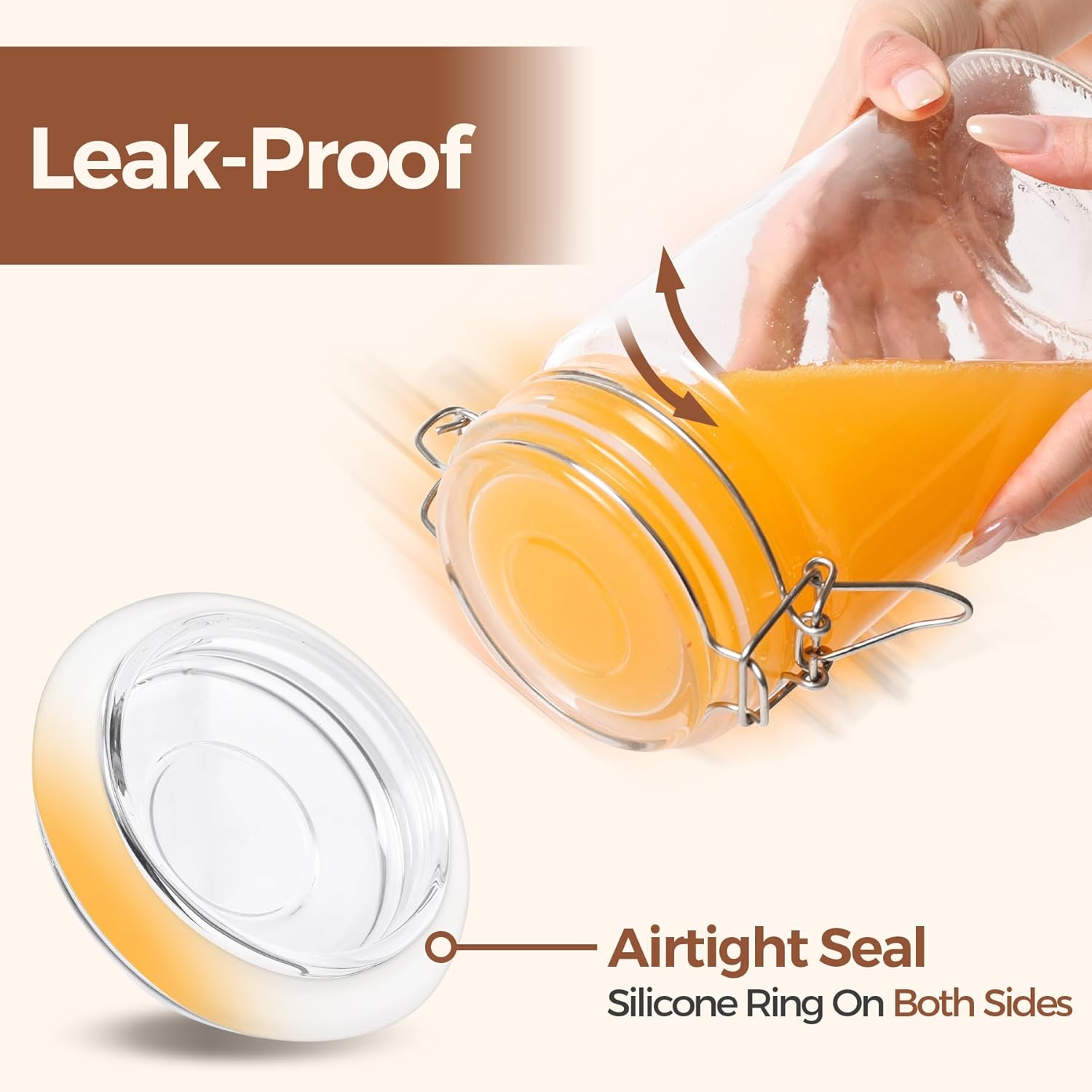 - Leak-Proof Airtight Jars: These food-grade wide mouth mason jars 32 oz feature silicone gaskets and stainless steel clips for airtight sealing. Ideal for keeping food fresh for storing liquids like dressings, sauces and vanilla extract