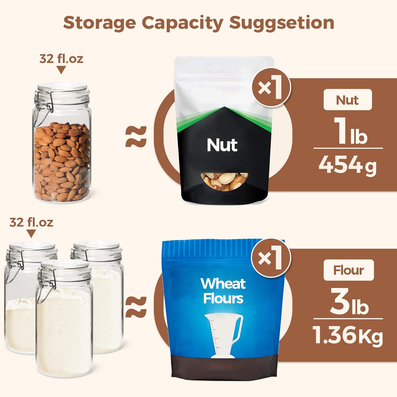 - Clear Glass Jar: Our 32oz jars feature a see-through design, making it easy to check what's inside and identify any signs of spoilage; whether you're meal prepping, organizing your pantry or making preserves, these glass quart jars are a kitchen essential