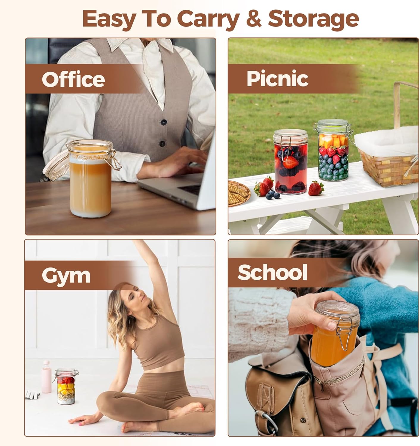 - Leak-Proof Airtight Jars: These pint mason jars boast a secure locking clamp and airtight silicone seal, ensuring leak-proof storage and keeping your food fresh and pest-free. Ideal for storing liquids like vanilla, juice,soups or sauces without spills
