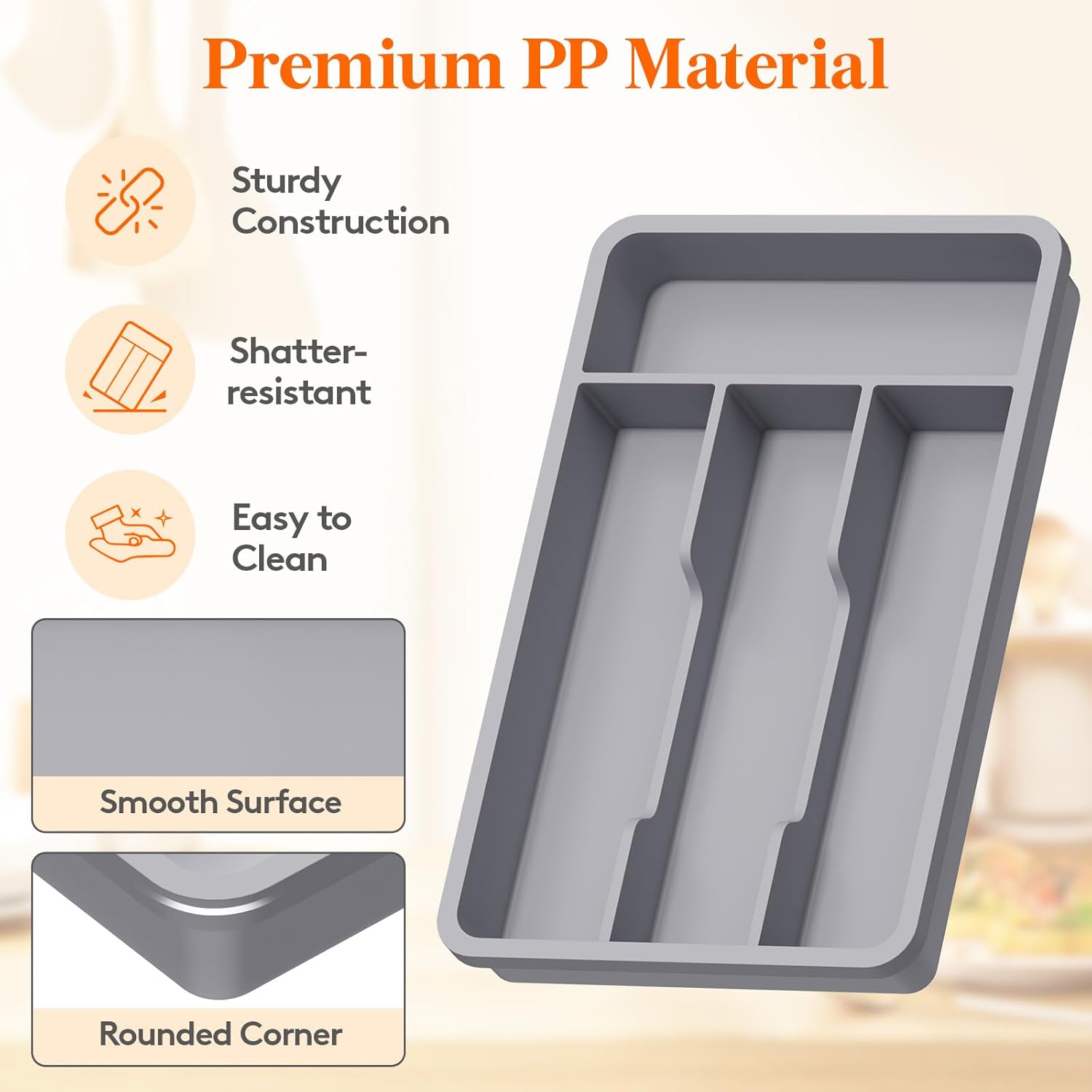 - Robust and Safe: This kitchen drawer organizer is crafted from premium PP material, BPA-free and built to last. It ensures your silverware is stored in a healthy, safe environment for worry-free use