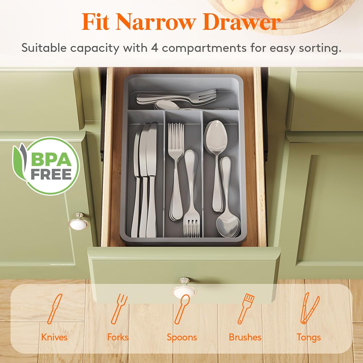 - Sort Your Silverware: The silverware tray comes with 4 compartments, creating more space in drawers for spoons, cutlery, and flatware. Streamline your cooking with a no-install organizer that keeps cutlery at your fingertips