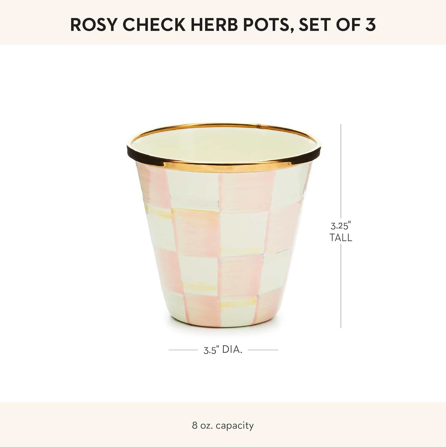 MACKENZIE-CHILDS Enamel Herb Pots, Small Plant Pots for Herbs or Flowers, Set of 3, Pink-and-White Rosy Check