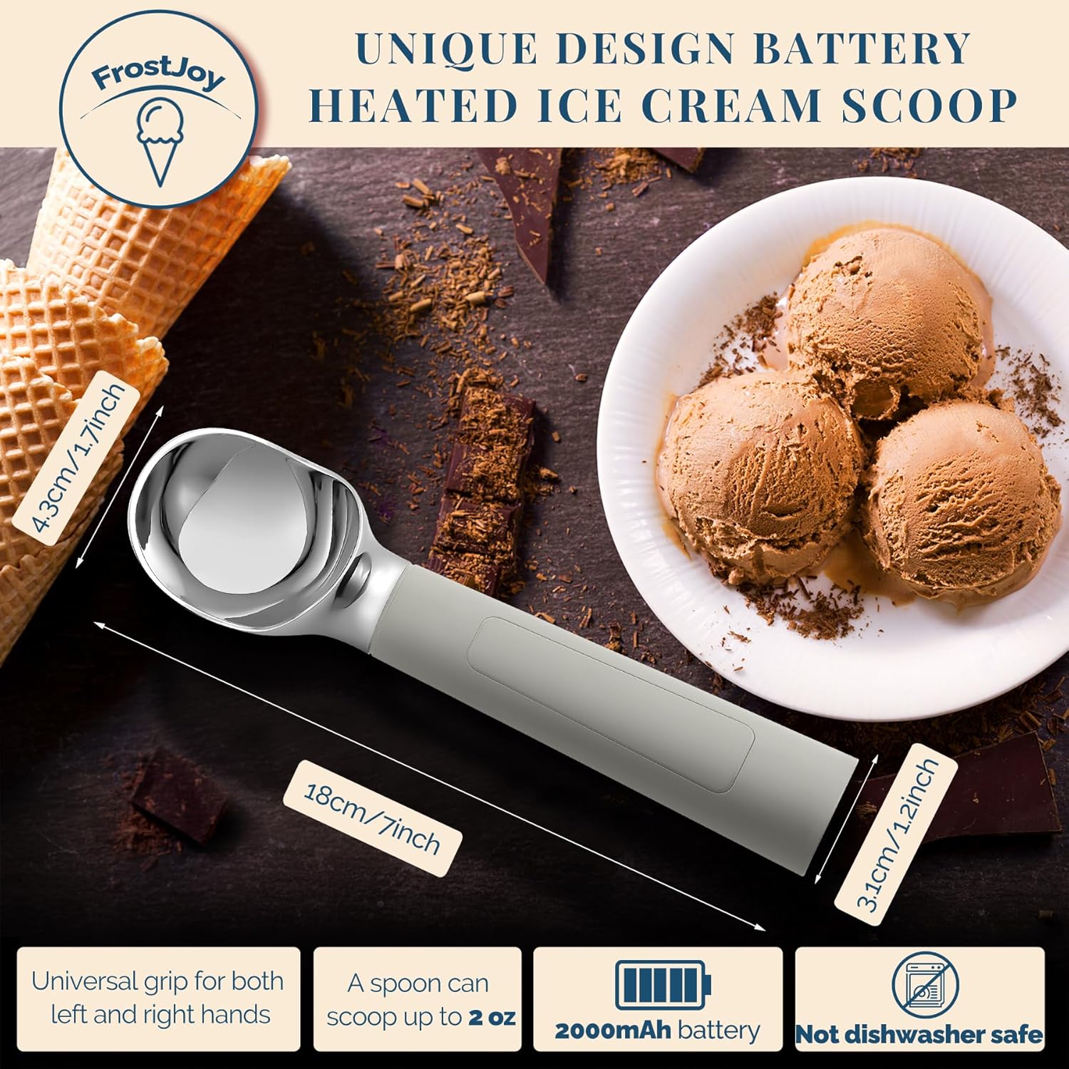 - [Easy for Anyone to Use] – Designed to help those with limited hand strength. Seniors, children, or people with limited grip can scoop ice cream effortlessly with this electric scooper. It reduces strain on wrists and hands, so everyone in the family can serve themselves a sweet treat with ease (adult supervision recommended for kids under 12)