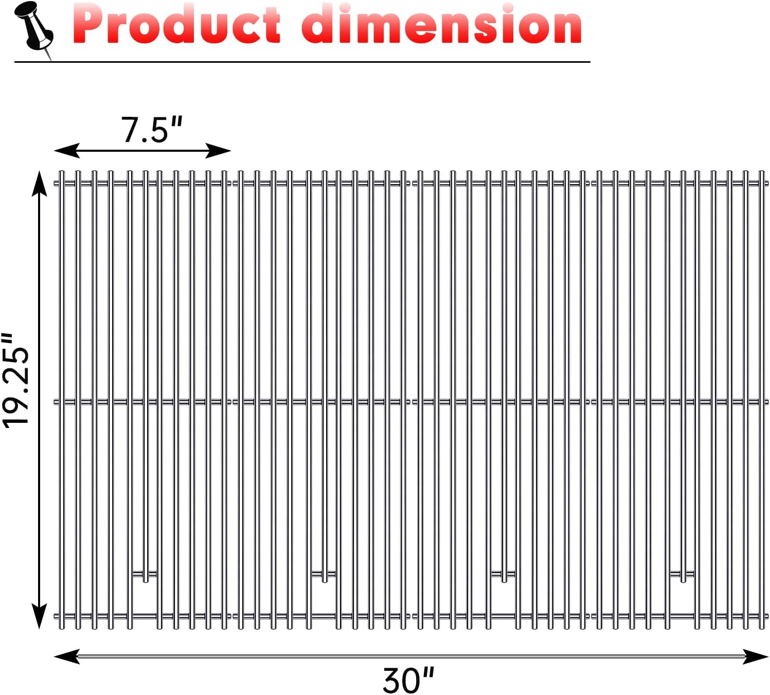 - Material: Grill grids & grates for Bull bbq grates replacement are made of 9 mm durable stainless steel, thicker than other bbq grill parts, 19 1/4” L x 7 1/2” W for each grate, 19 1/4 x 30” for total